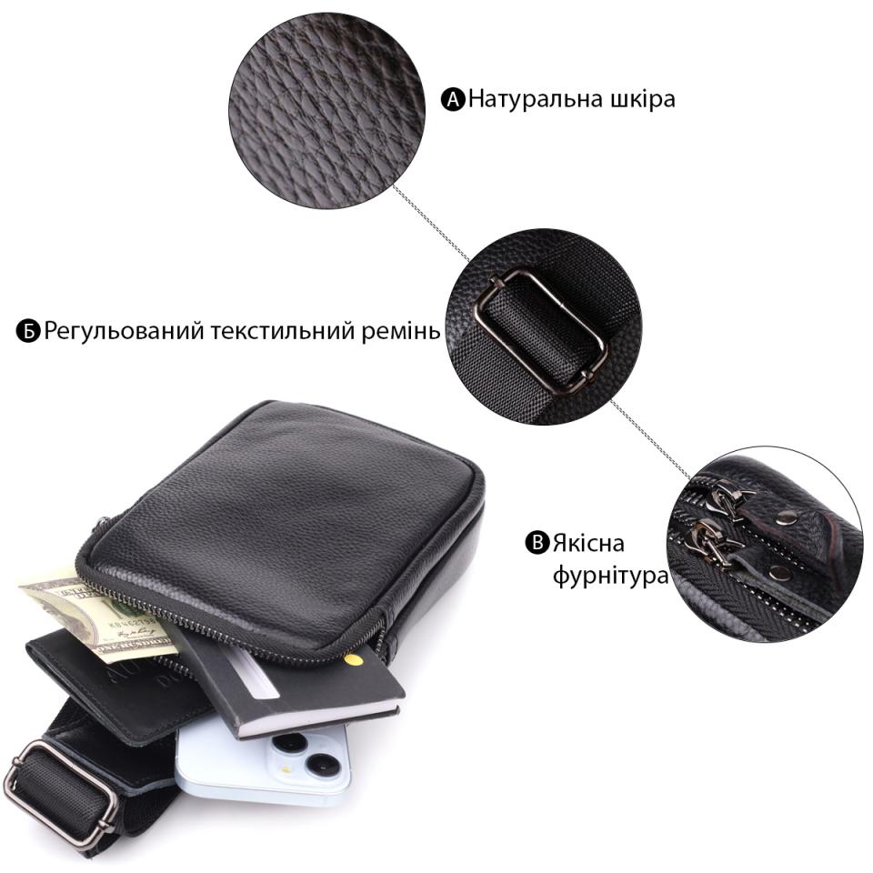 Характеристики: Сумка-слинг для мужчин из натуральной кожи Vintage 22955 Черный