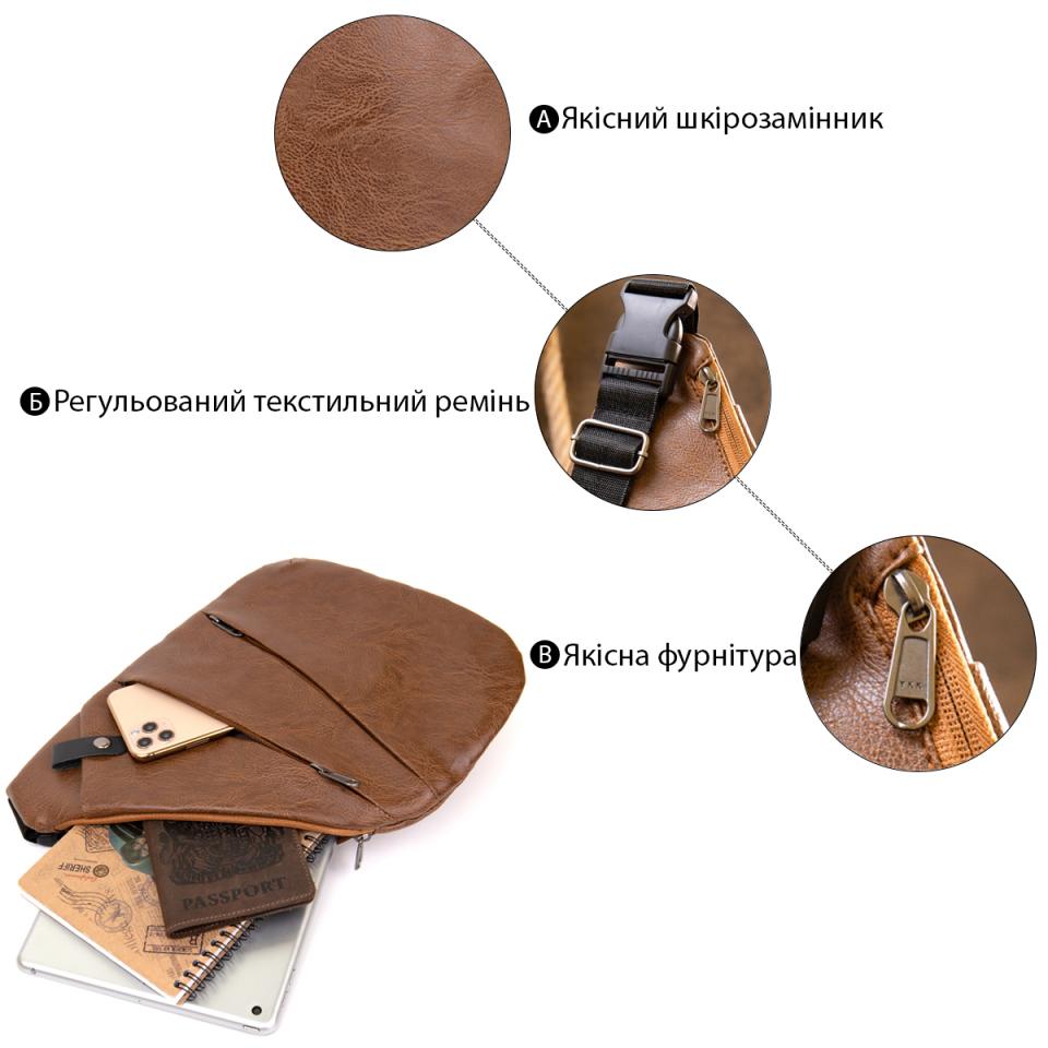 Характеристики: Сумка слинг кожзам Vintage 20567 Светло-коричневая