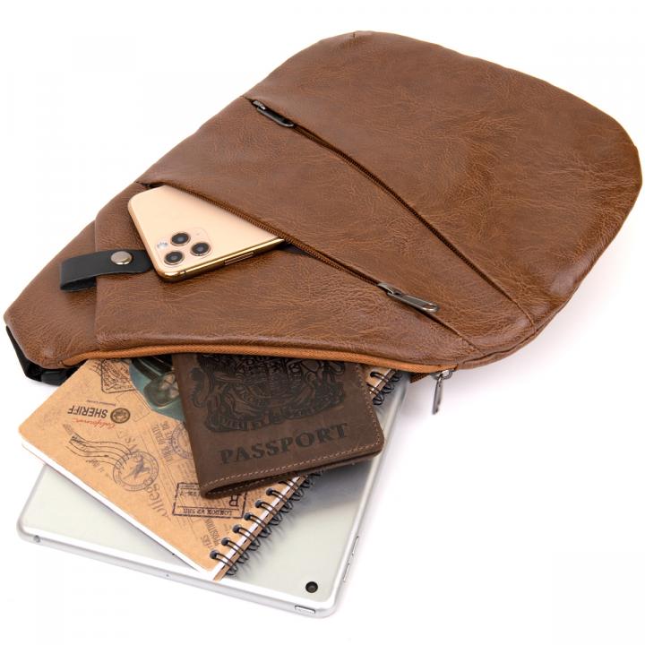 Сумка слинг кожзам Vintage 20567 Светло-коричневая