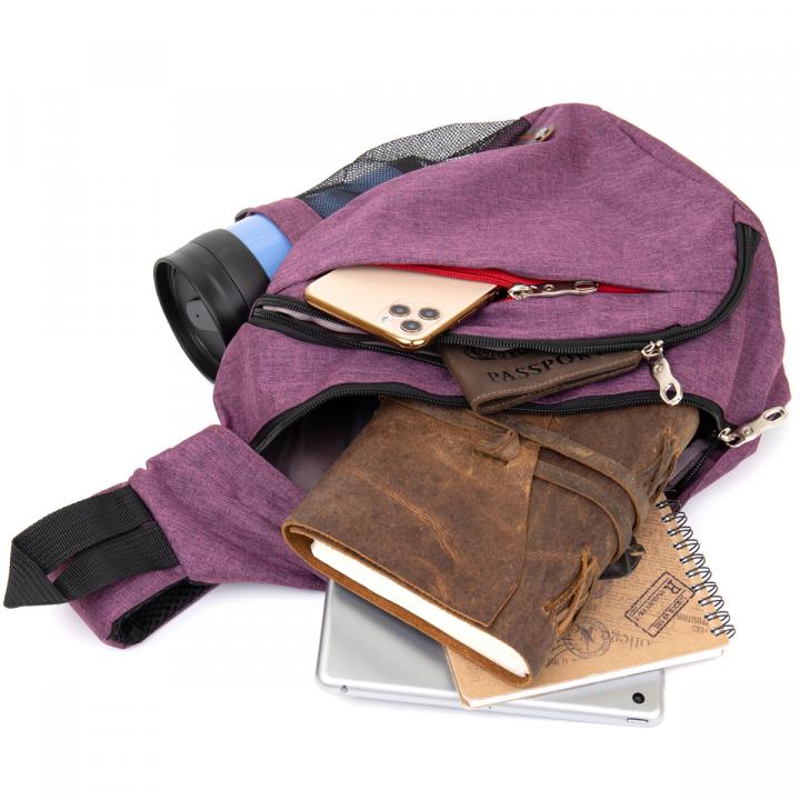 Вместительная сумка среднего размера из плотного текстиля малинового цвета. Идеальный вариант для ежедневного использования и поездок. Сумка подойдет как для мужчин так и для женщин. Сумка очень эргономичная. Изделие продумано с учетом всех тенденций. С сумкой через плечо все ваши личные вещи будут в безопасности и перед вашими глазами. Функционал и расположение карманов данной сумки делает более легким доступ к вашим личным вещам. Данная модель имеет достаточно карманов для того чтобы разложить все ваши вещи в полном порядке и вместить в нее по-максимуму. Сумка через плечо станет прекрасным подарком для ваших близких. На тыльной стороне аксессуара уплотненная спинка в сетку. В комплекте идет шнур.