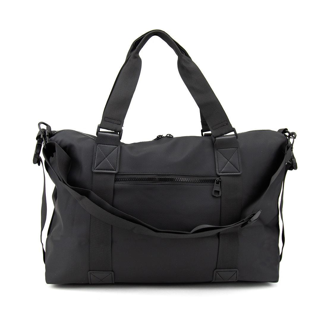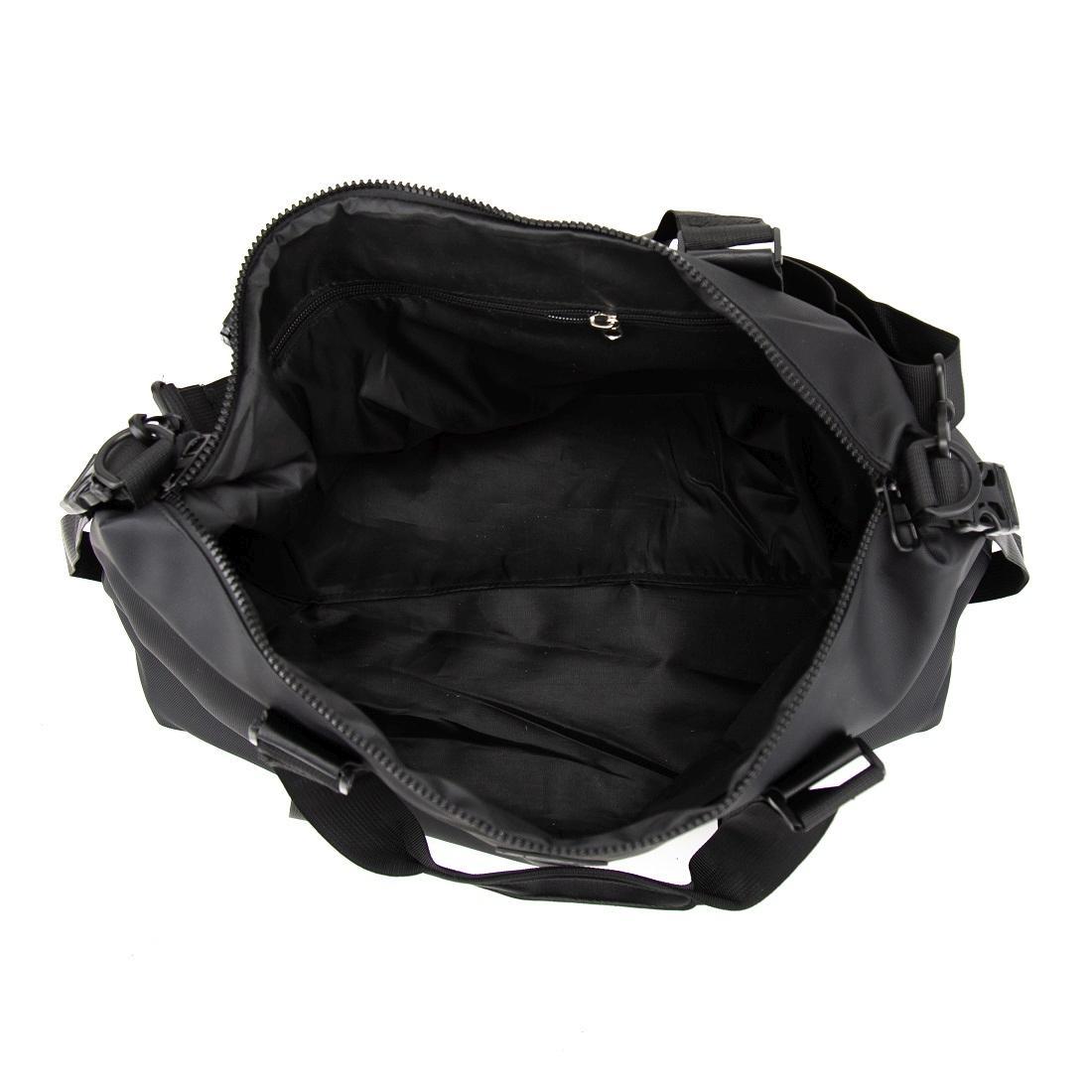 Сумка дорожная шита из прочной черной ткани, с водоотталкивающими свойствами.