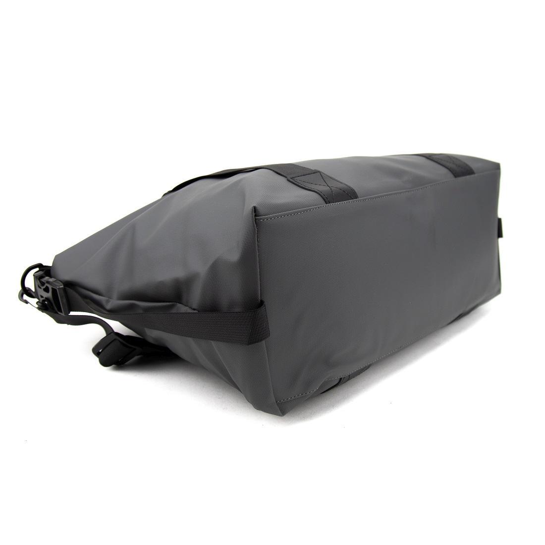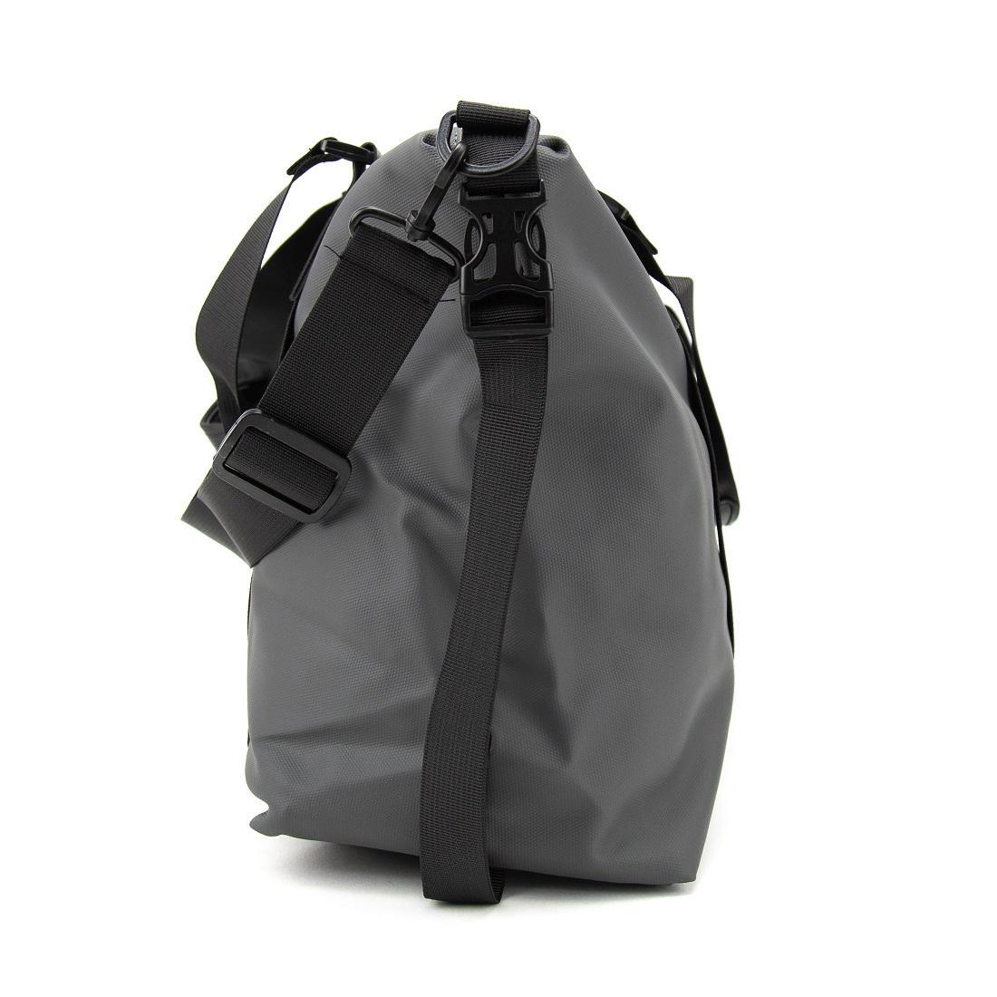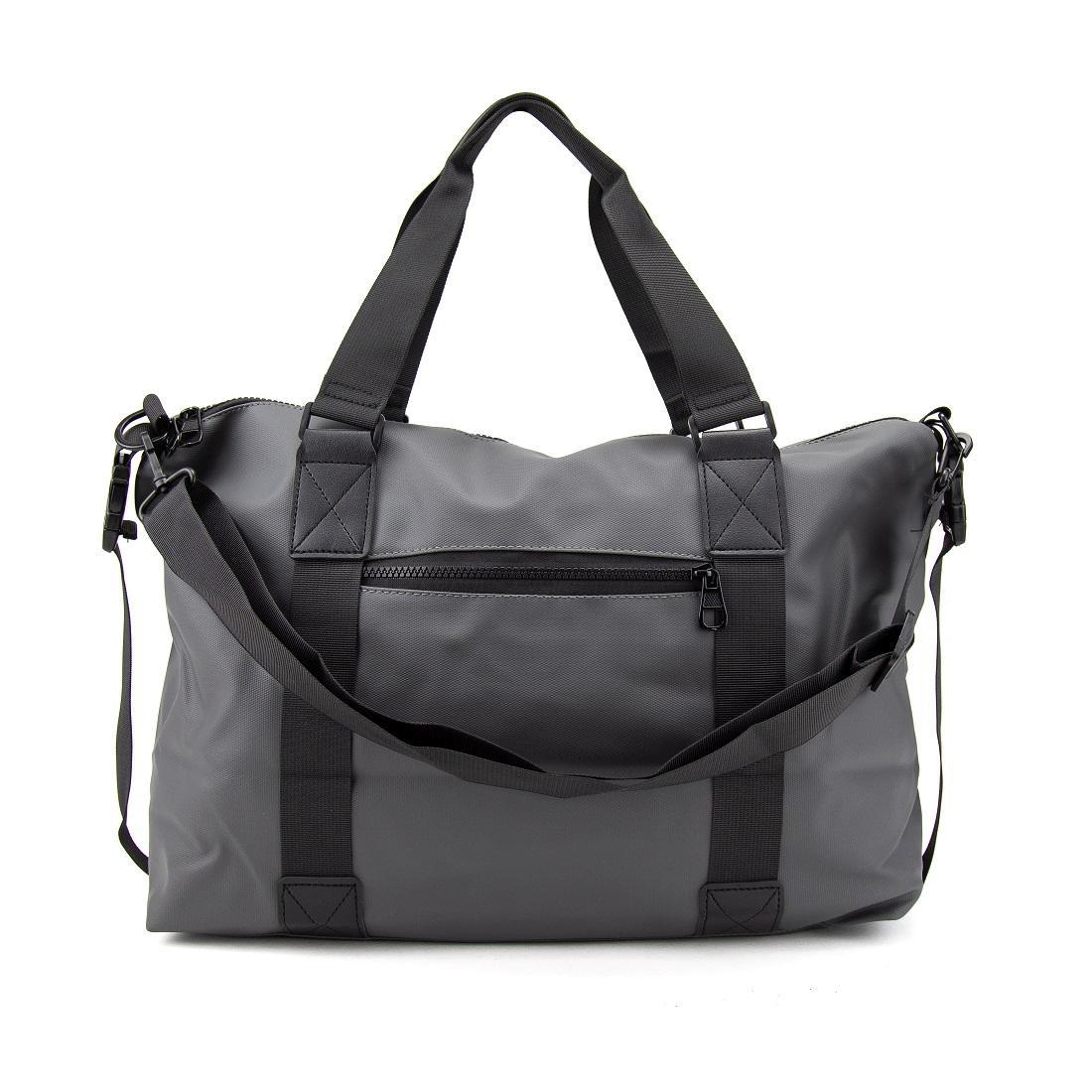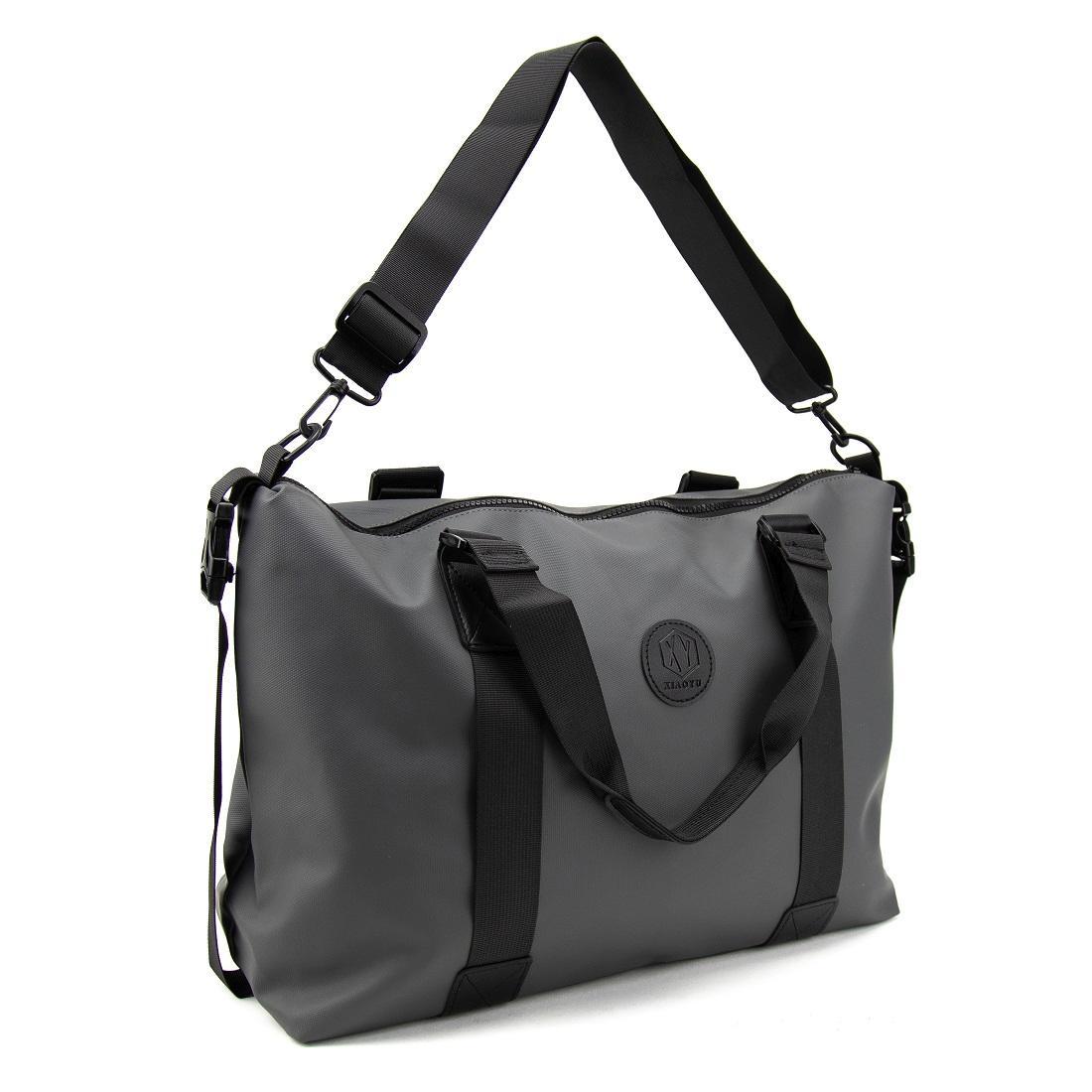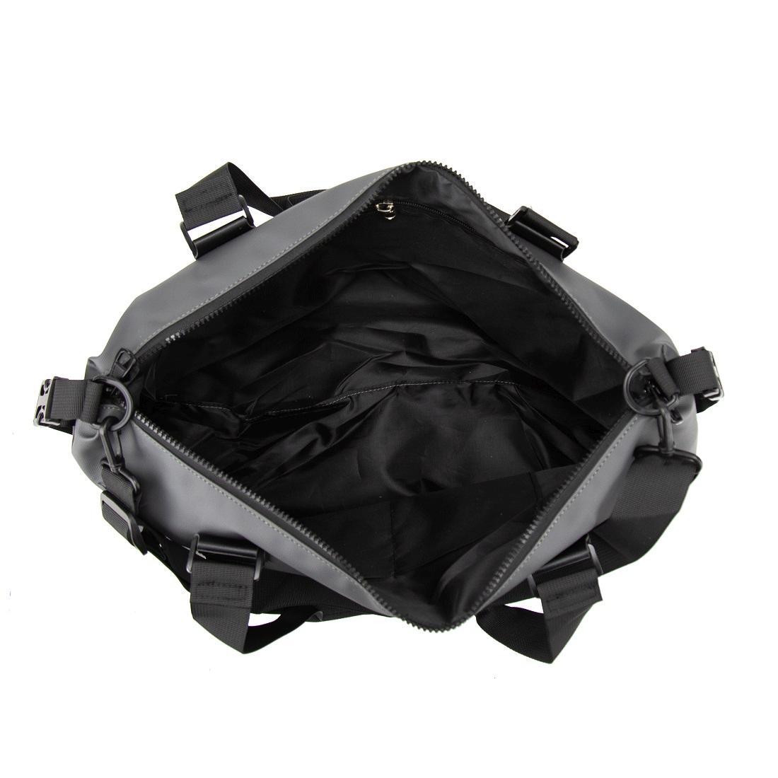 Сумка дорожная шита из прочной серой ткани, с водоотталкивающими свойствами.
