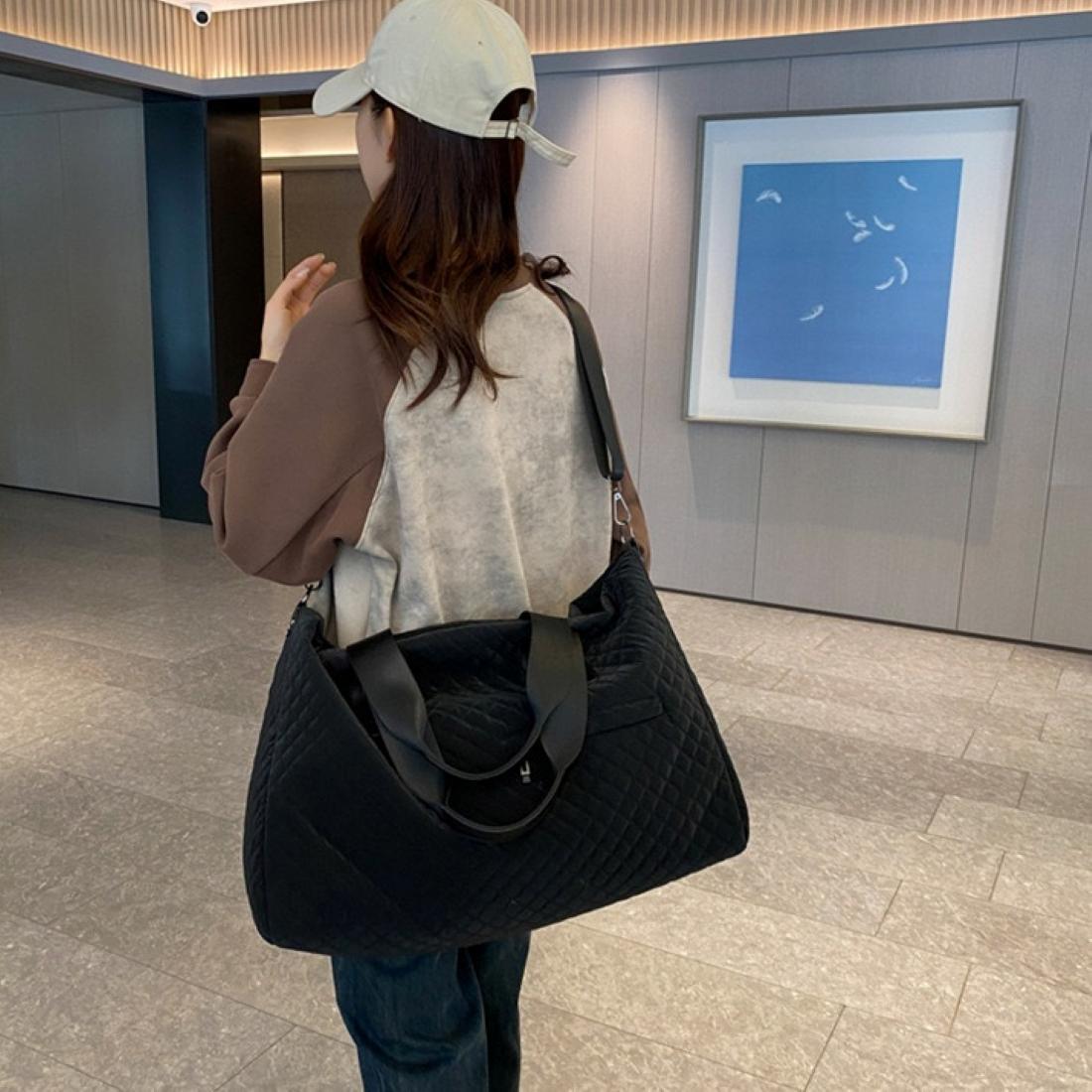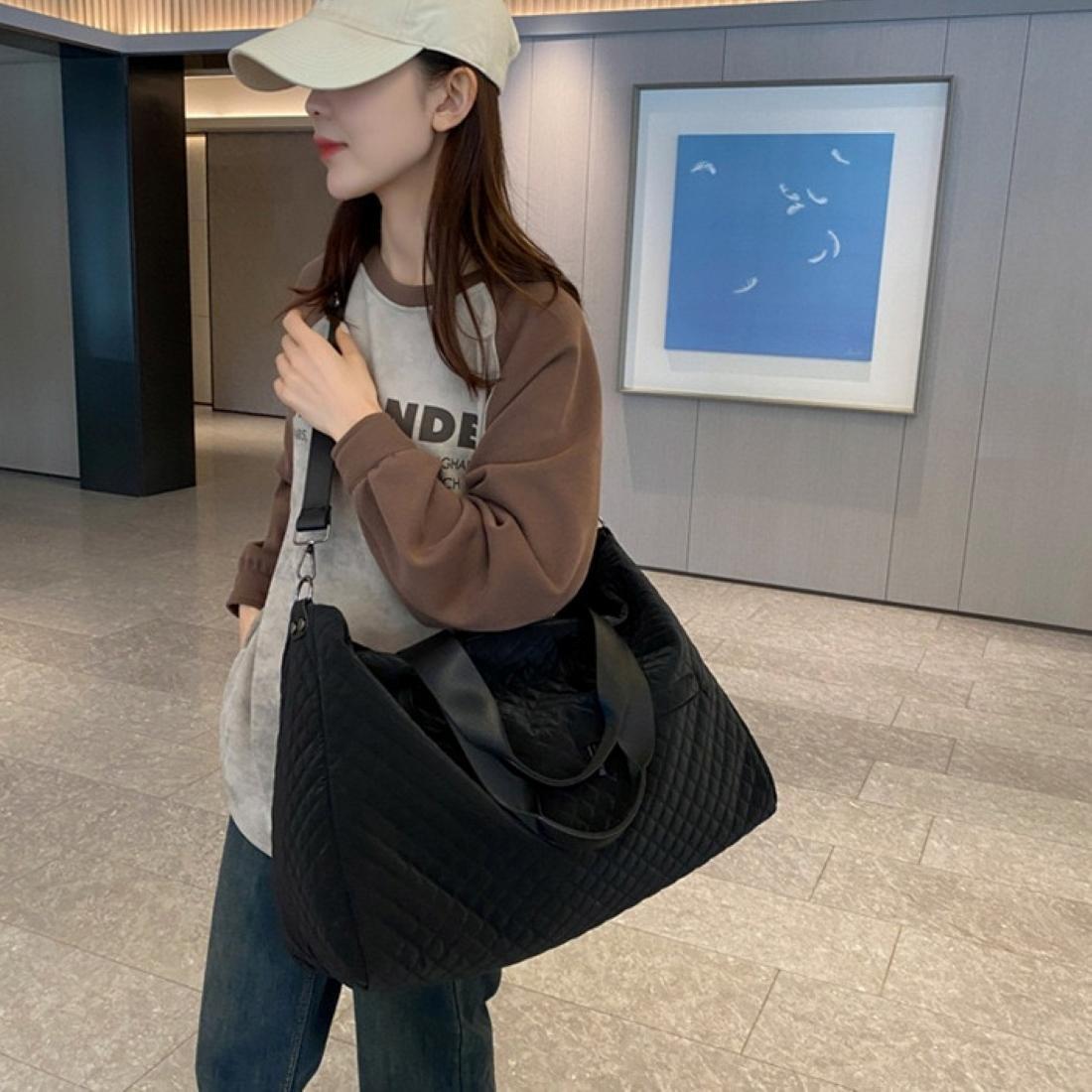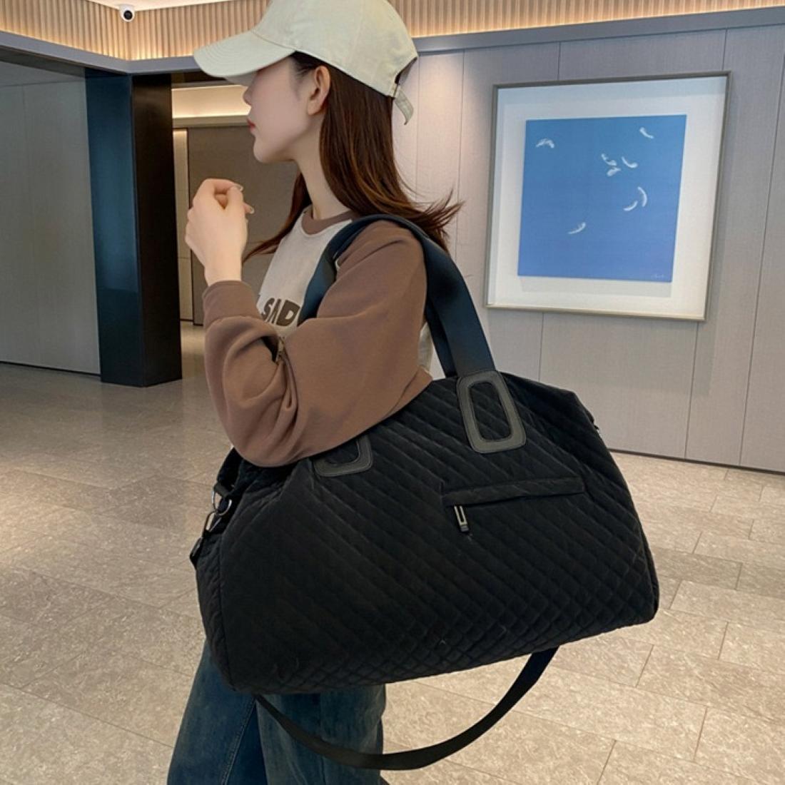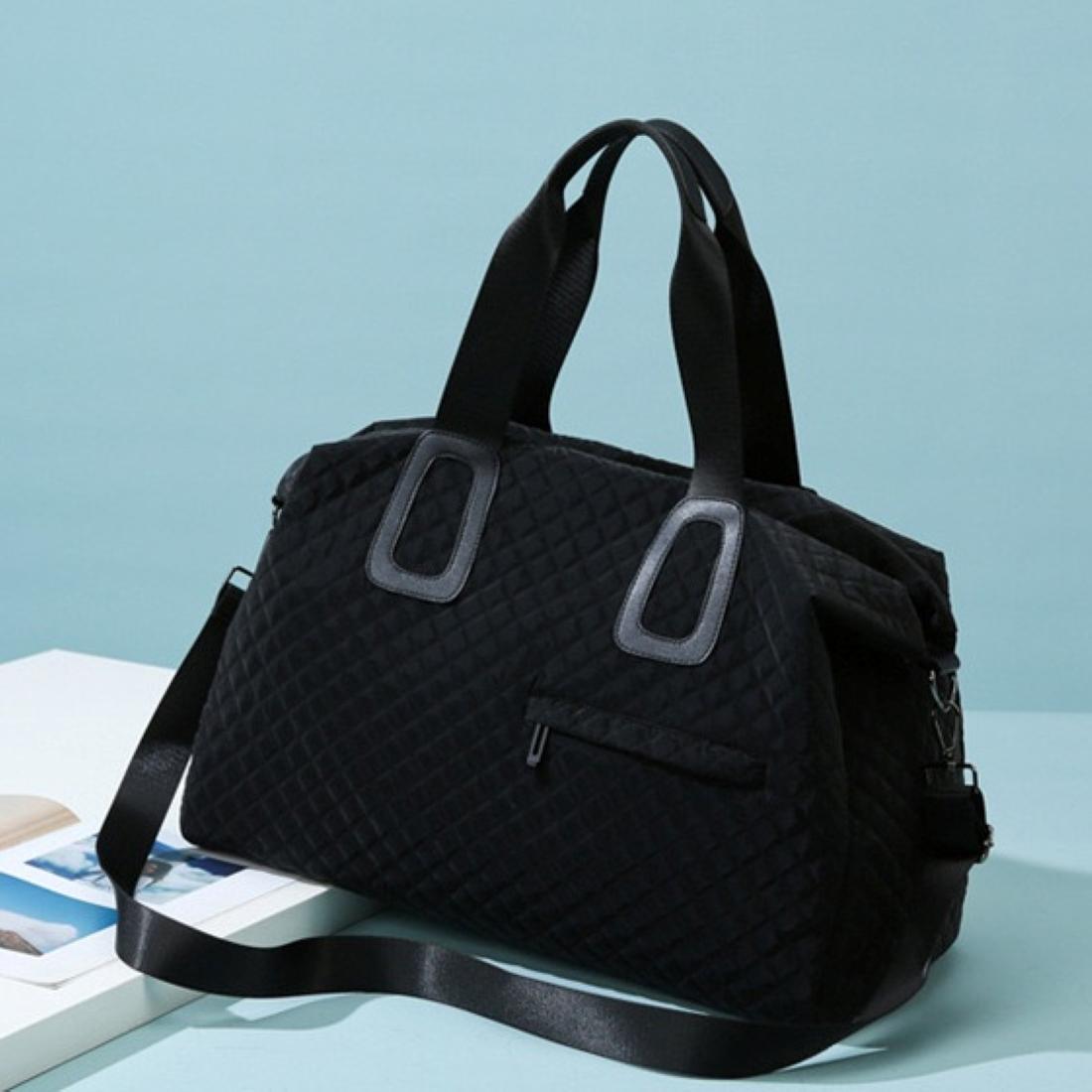 Кроме коротких ручек в комплекте есть длинный текстильный наплечный ремень, который регулируется по длине и отстегивается с помощью карабинов.