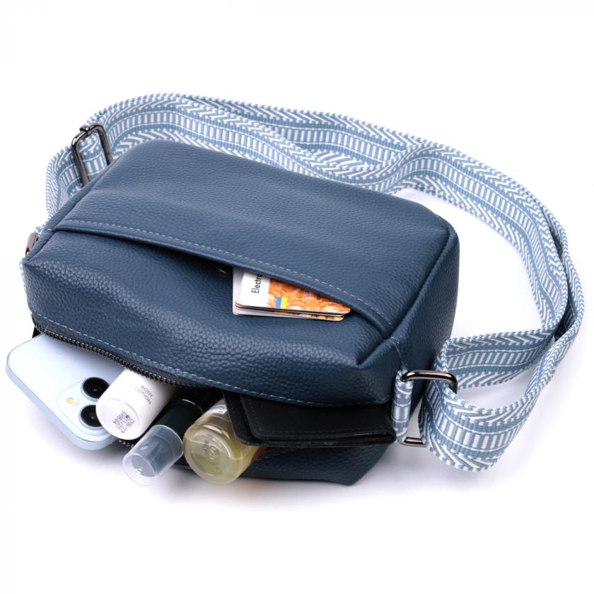 Трендовая сумка на одно отделение для стильных женщин из натуральной кожи Vintage 22605 Синяя