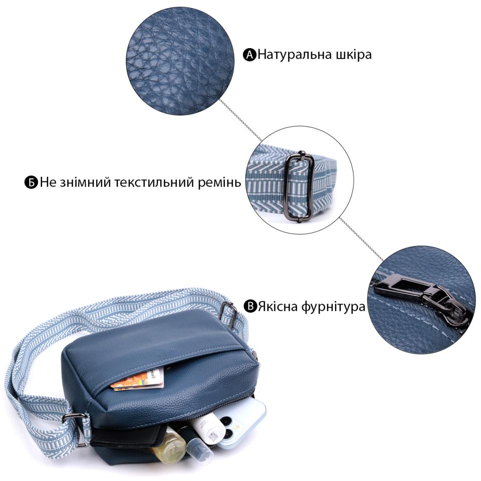 Описание: Трендовая сумка на одно отделение для стильных женщин из натуральной кожи Vintage 22605 Синяя