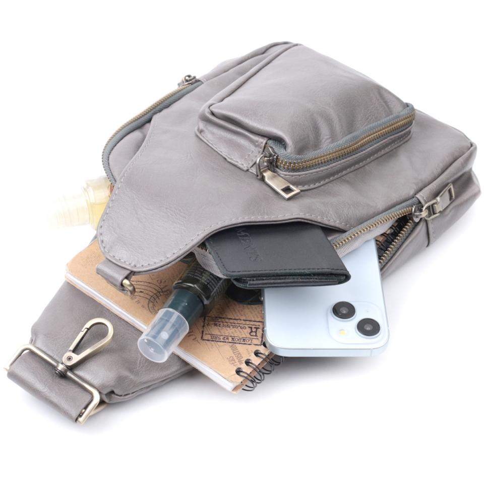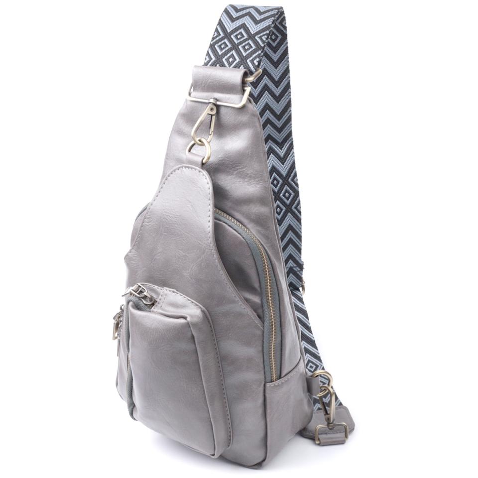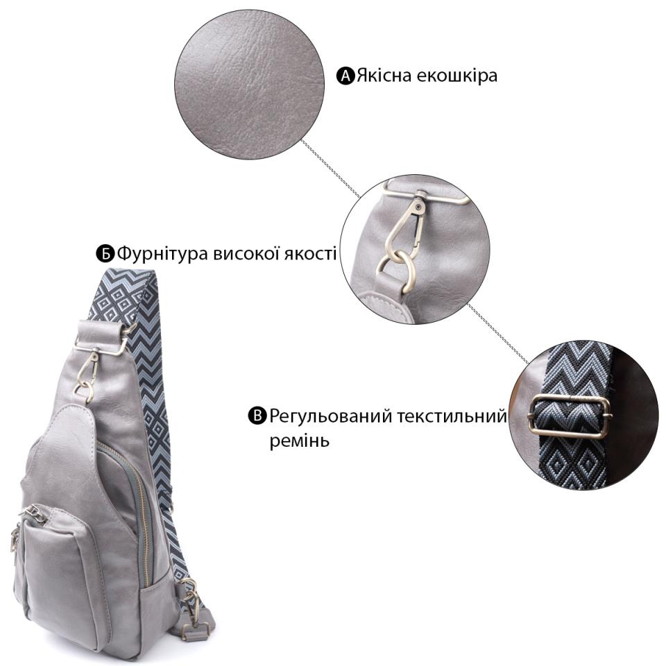 Характеристики: Удобная женская сумка из экокожи с акцентом на текстильную лямку Vintage 22777 Серый