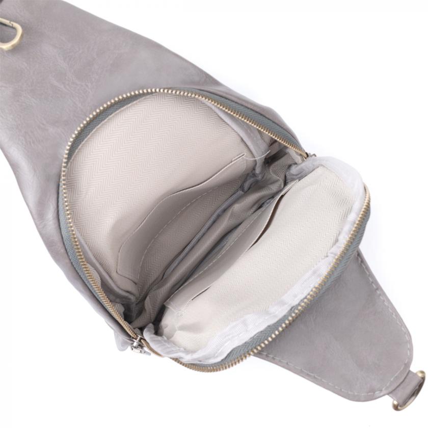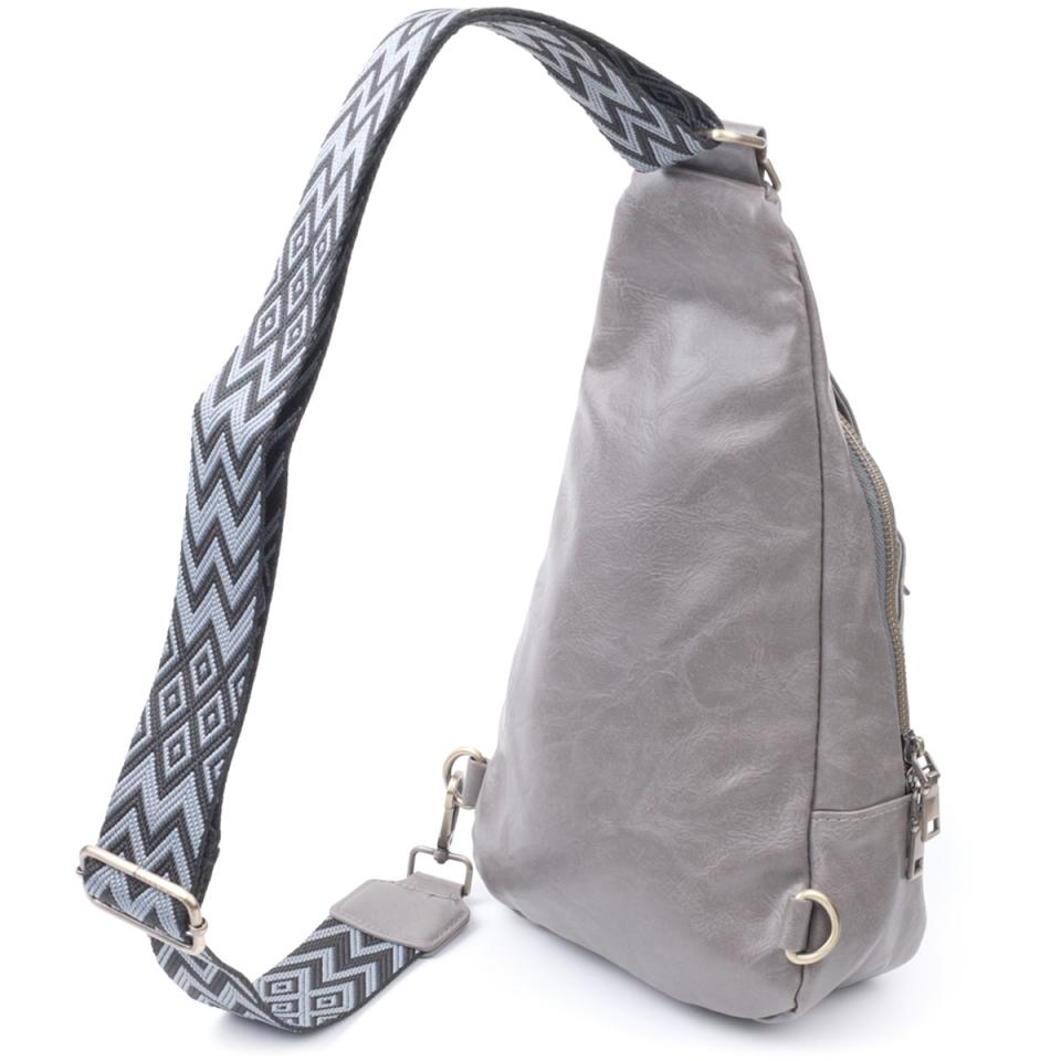 Удобная женская сумка из экокожи с акцентом на текстильную лямку Vintage 22777 Серый