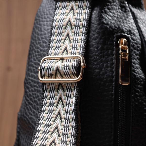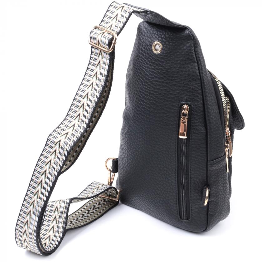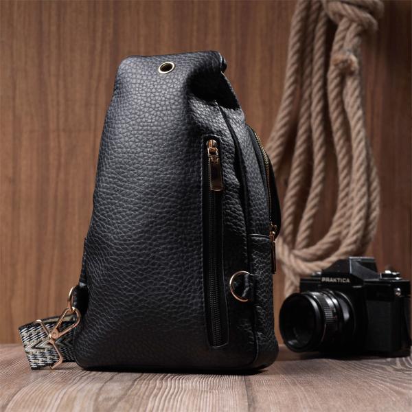 Удобная женская слинг сумка из зернистой экокожи в интересном черном цвете. Данная модель состоит из одного основного отделения которое закрывается на молнию и в котором находится карман на молнии и четыре кармана для кредитных карт внутри, а также двух карманов снаружи и одного отверстия для кабеля или наушников, что очень удобно в современной мире. Акцентом данной модели является удобный регулируемый плечевой ремешок в этническом стиле, что очень модно уже несколько сезонов. Экокожа - высококачественная альтернатива натуральному материалу, которая очень устойчива к трению, к низким температурам, отлично носится в отличии от других искусственных материалов, а также имеет гипоаллергенный состав в отличии от натуральной кожи.