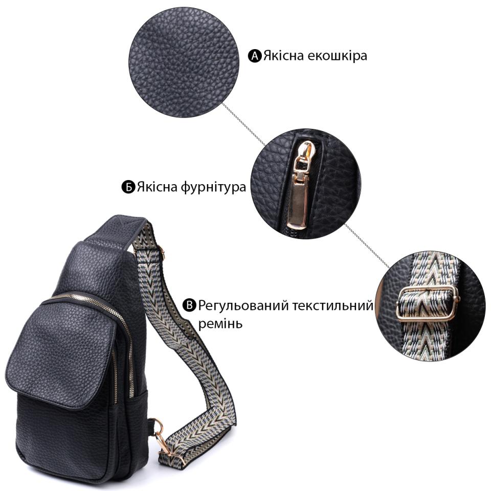 Характеристики: Удобная женская сумка с одной лямкой через плечо из крупнозернистой экокожи Vintage 22763 Черный