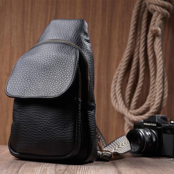 Отзывы: Удобная женская сумка с одной лямкой через плечо из крупнозернистой экокожи Vintage 22763 Черный