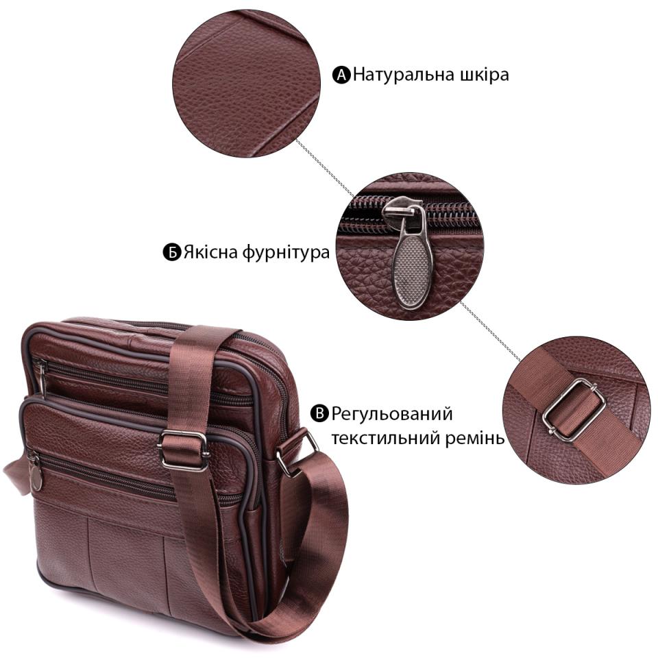 Характеристики: Удобная мужская сумка из натуральной кожи 22858 Vintage Коричневый