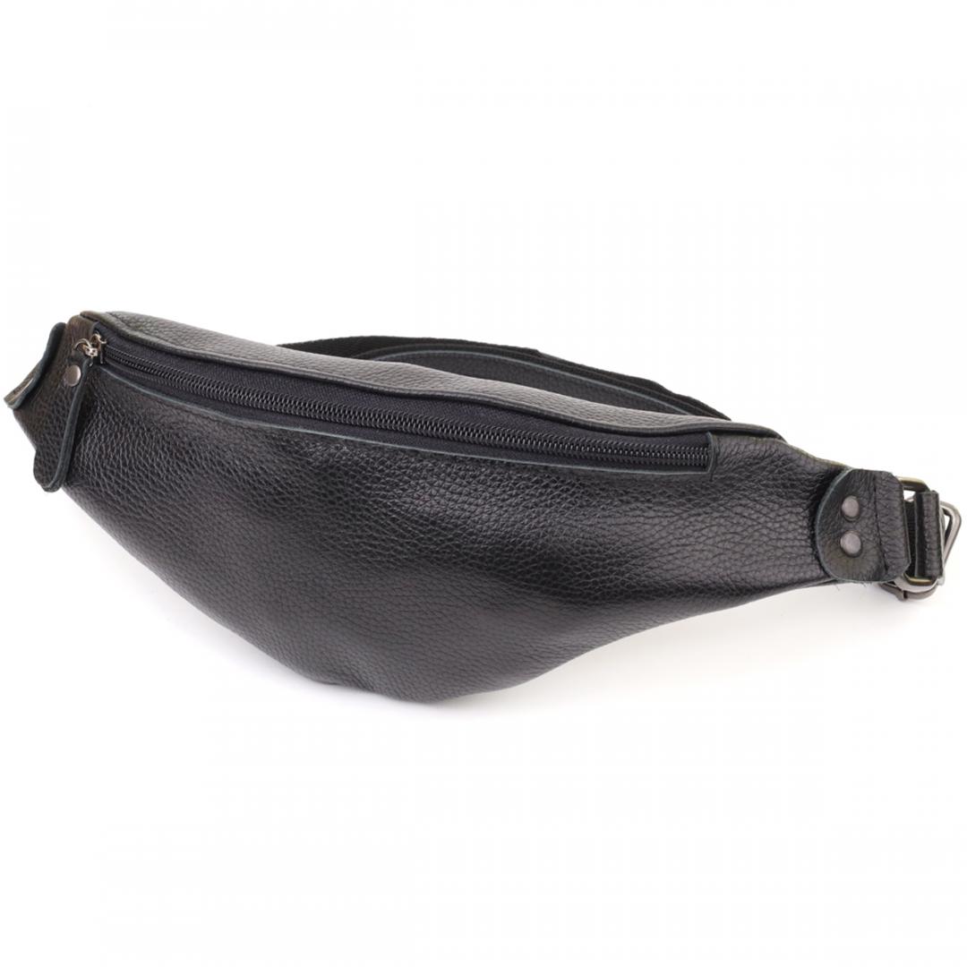 Описание: Удобная сумка бананка для мужчин из зернистой натуральной кожи Shvigel 23136 Черный