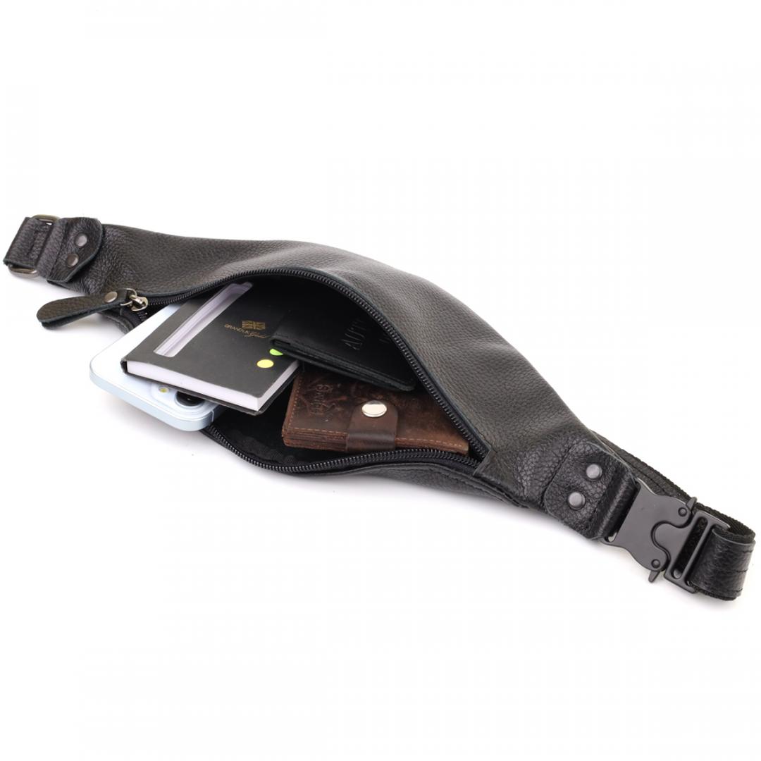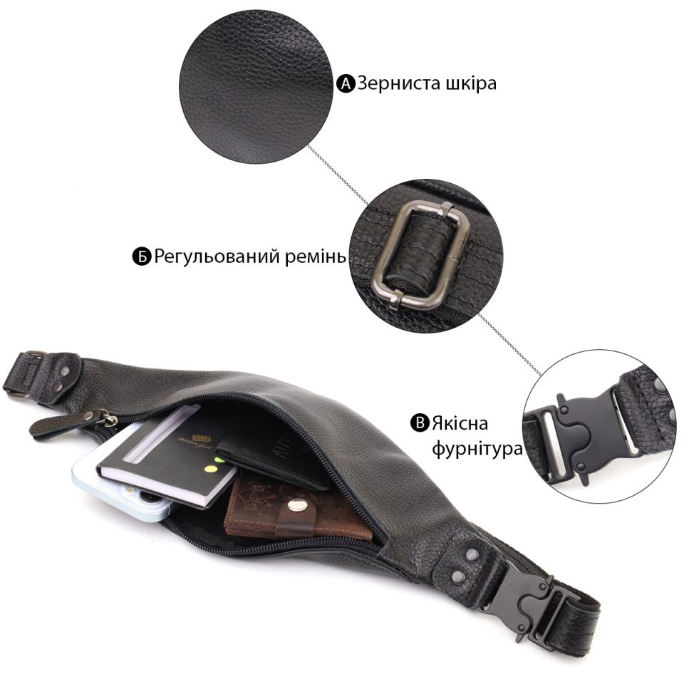 Характеристики: Удобная сумка бананка для мужчин из зернистой натуральной кожи Shvigel 23136 Черный