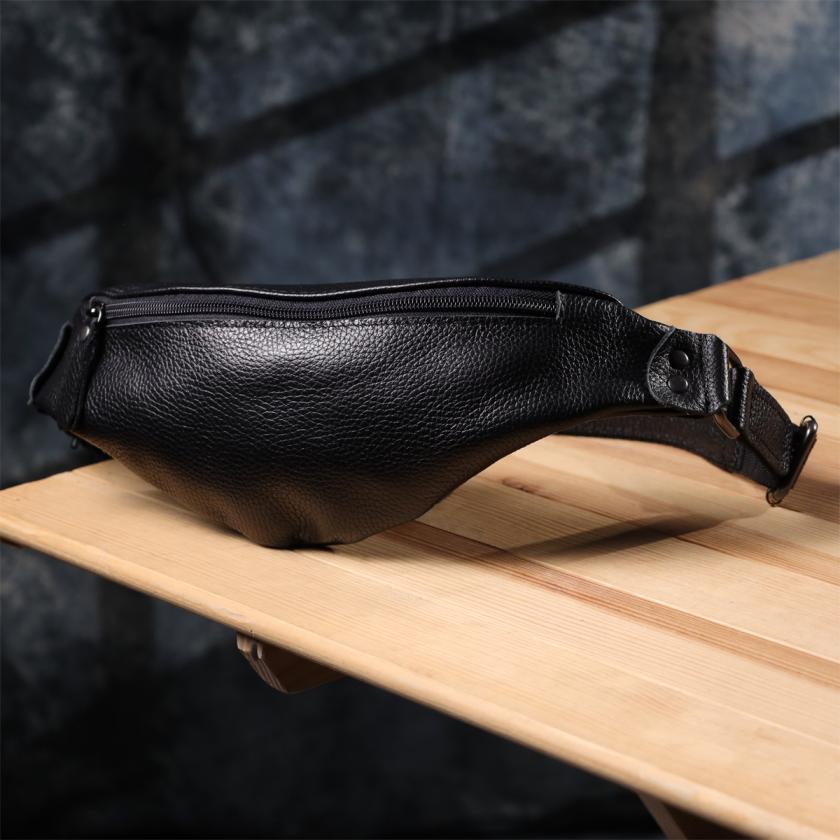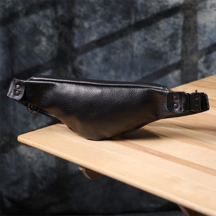 Отзывы: Удобная сумка бананка для мужчин из зернистой натуральной кожи Shvigel 23136 Черный