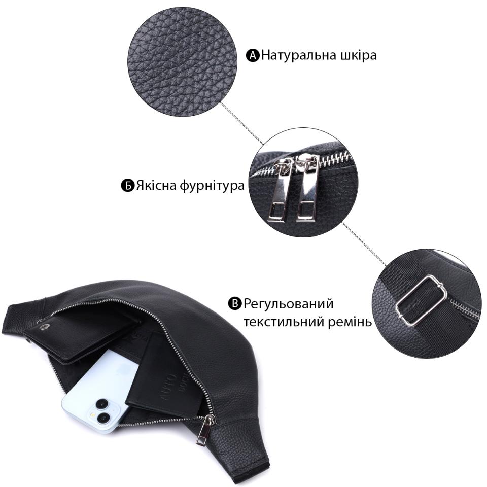 Характеристики: Удобная сумка-бананка унисекс из натуральной кожи Shvigel 22824 Черная
