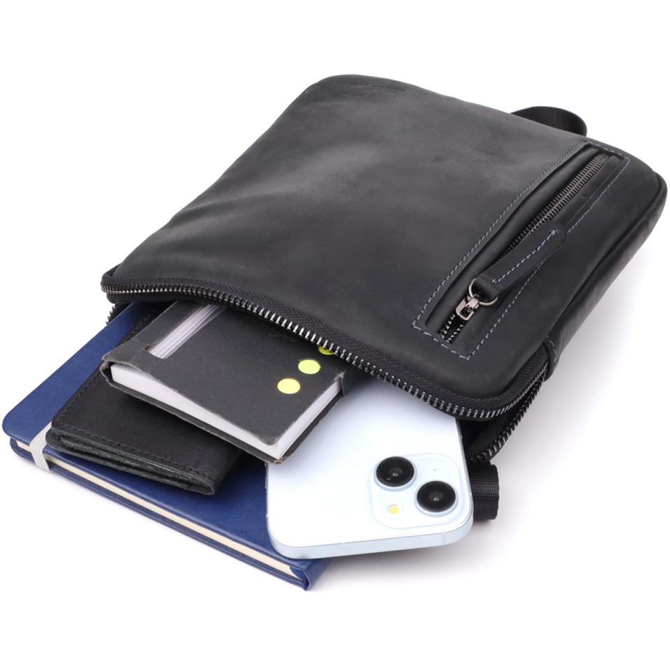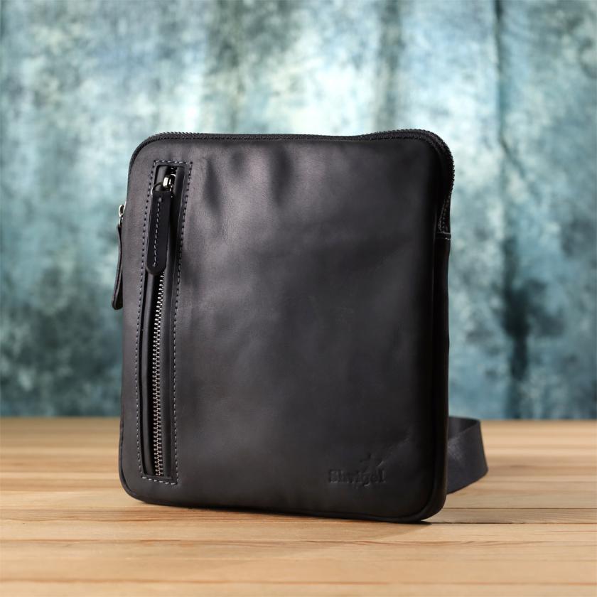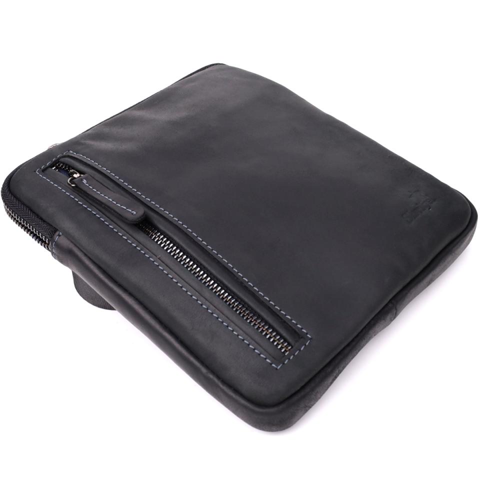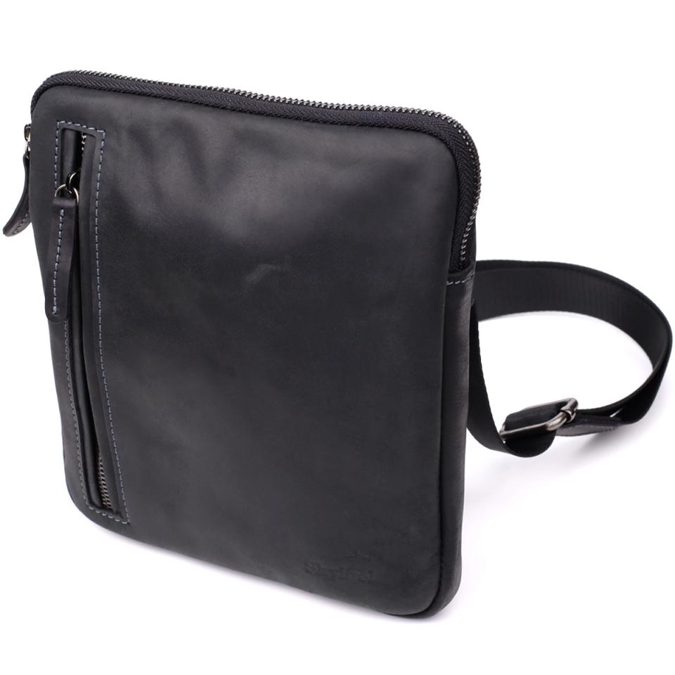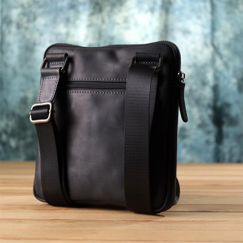 Отзывы: Удобная сумка для мужчин на плечо из натуральной винтажной кожи Shvigel 23147 Черный