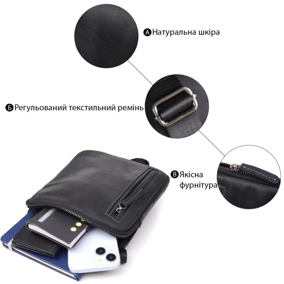 Характеристики: Удобная сумка для мужчин на плечо из натуральной винтажной кожи Shvigel 23147 Черный