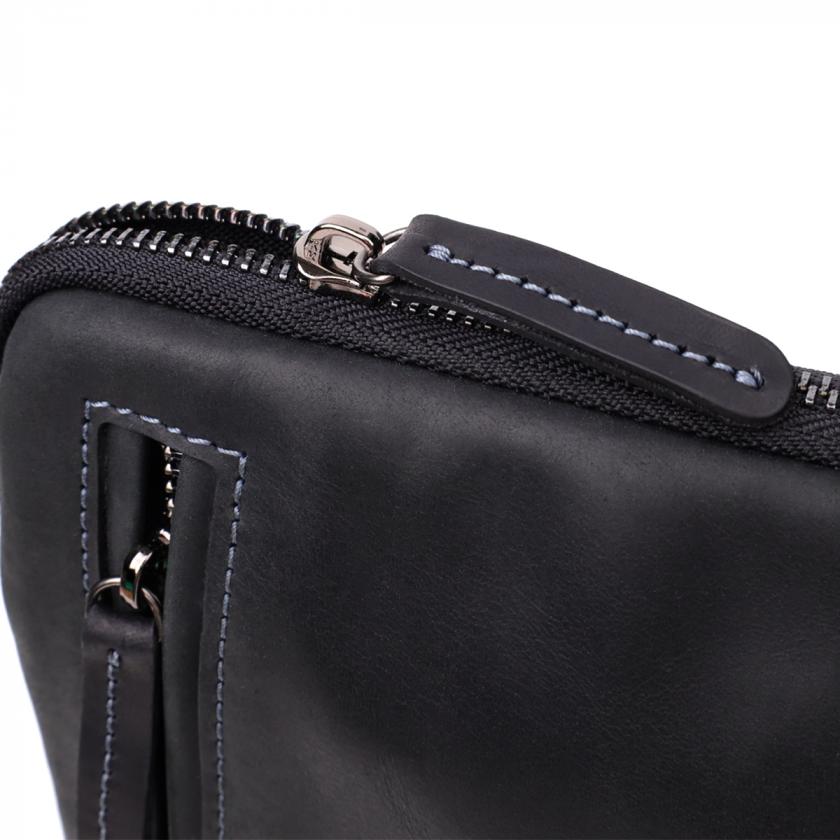 Компактная мужская вертикальная сумка SHVIGEL выполнена из натуральной винтажной кожи с декоративной синей строчкой по контуру. Лаконичный дизайн в сочетании с функциональной организацией пространства делает её удобным аксессуаром для повседневного использования.