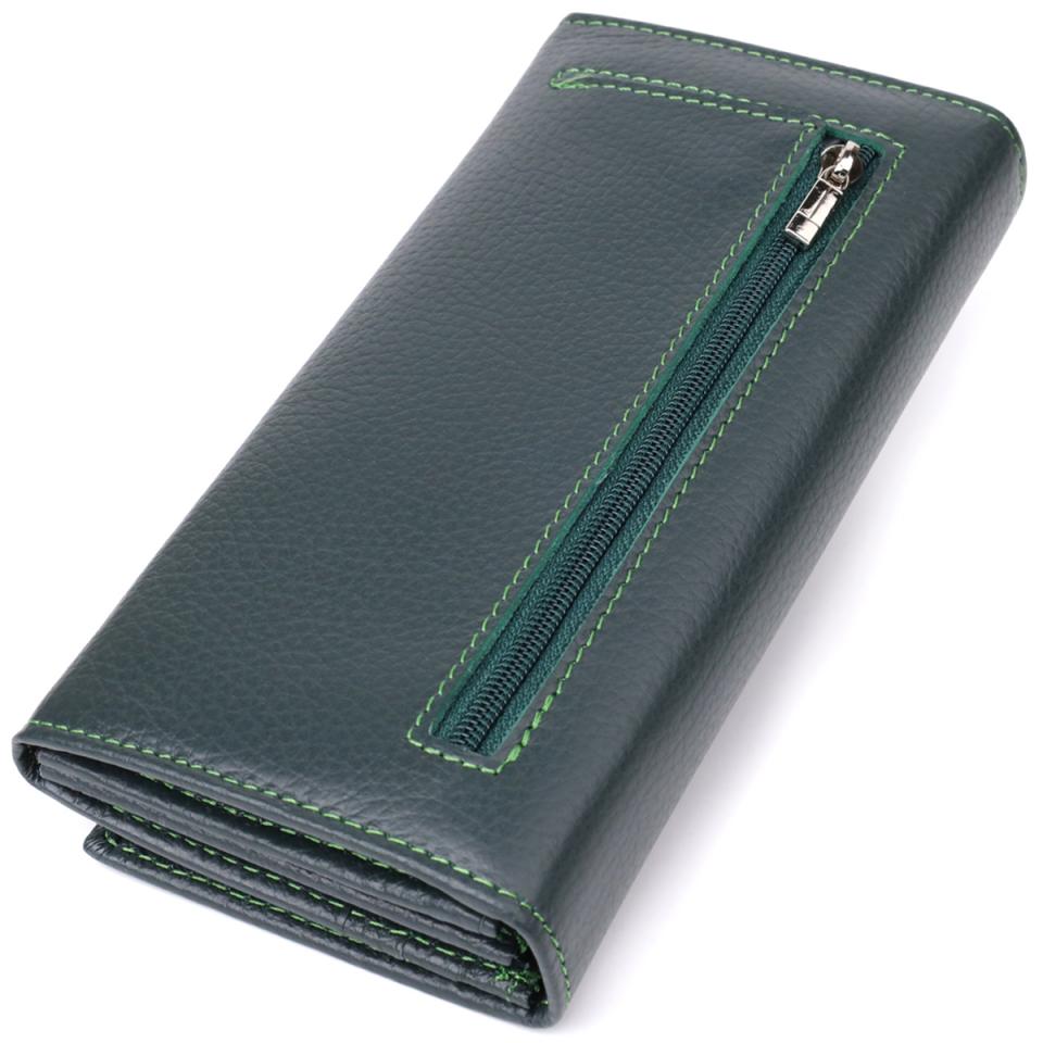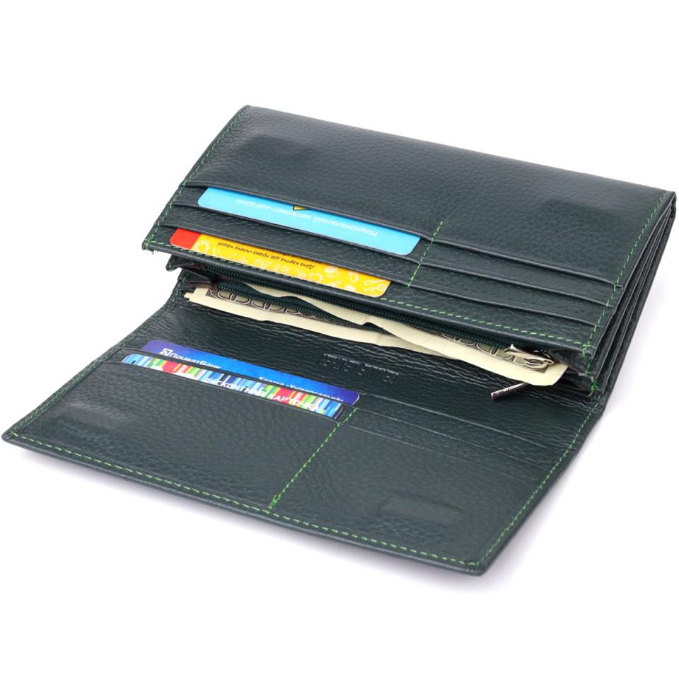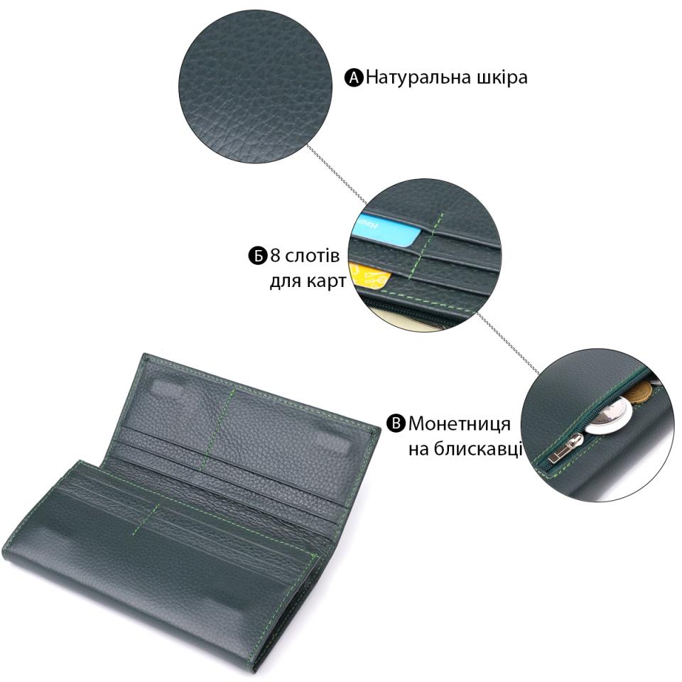 Характеристики: Удобный вертикальный кошелек из натуральной кожи ST Leather 23086 Зеленый
