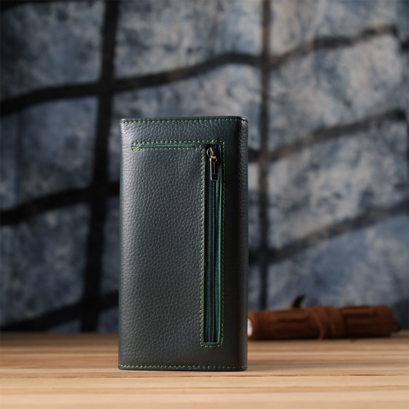 Удобный вертикальный кошелек из натуральной кожи ST Leather 23086 Зеленый