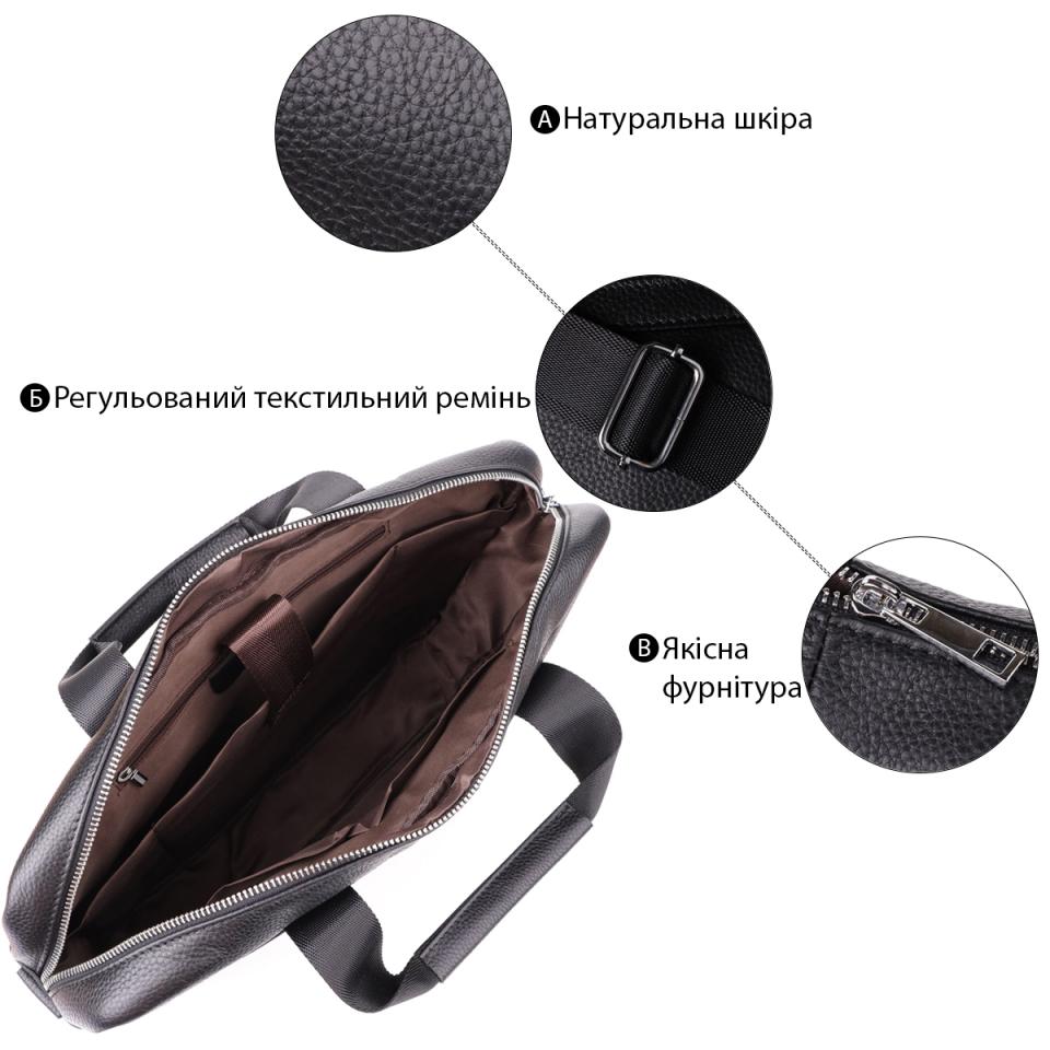 Опис: Деловой портфель для мужчин из натуральной кожи Vintage 23039 Черный
