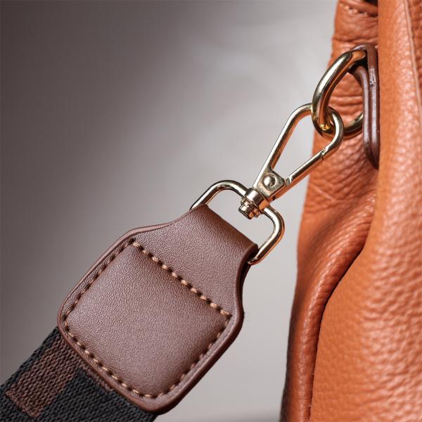 Деловая сумка для женщин в сочетании двух цветов рыжего и коричневого из натуральной кожи флотар, которая неприхотлива в уходе и долго носится. В изделии использованы металлические ножки на дне сумки для защиты дна от потертостей и механических повреждений. Аксессуар состоит из основного отделения, кармана открытого типа и потайного кармана на молнии внутри. Носить сумку можно в руке, на плече и через плечо, для этого имеются текстильный съемные ремень и кожаная ручка. В аксессуаре использована качественная фурнитура цвета желтого золота. Универсальный вариант сумки под деловой стиль и на каждий день.