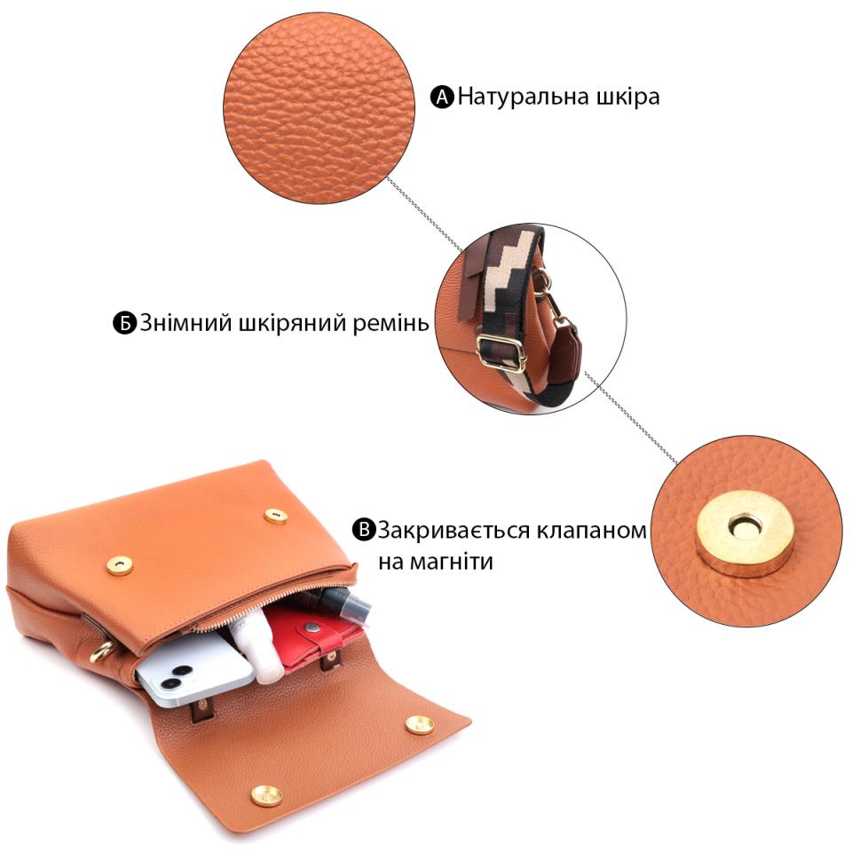 Опис: Элегантная сумка для женщин с короткой ручкой из натуральной кожи Vintage 22669 Рыжая