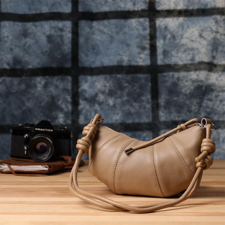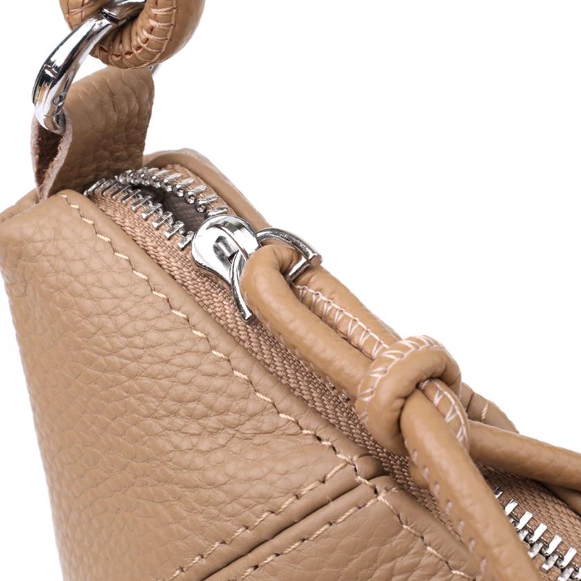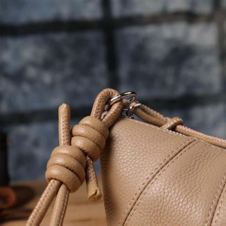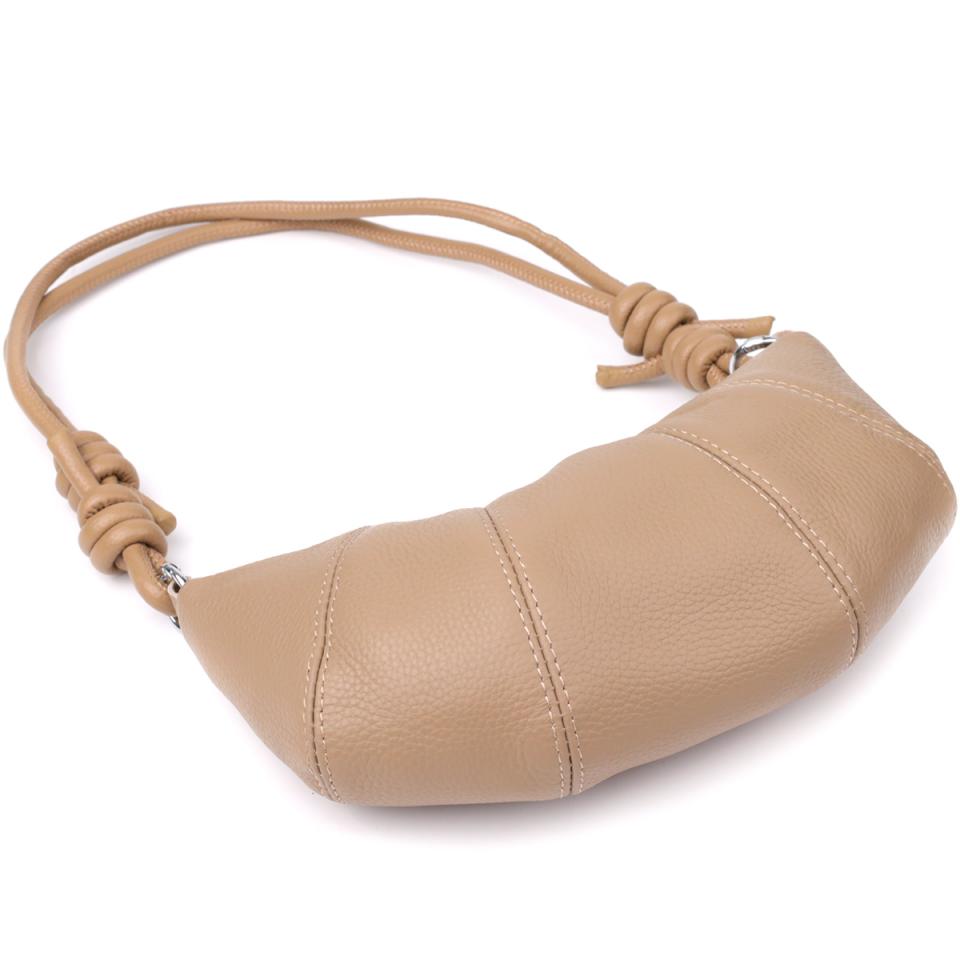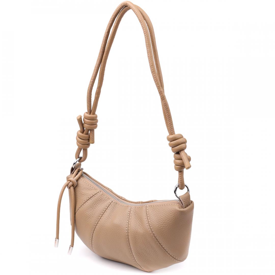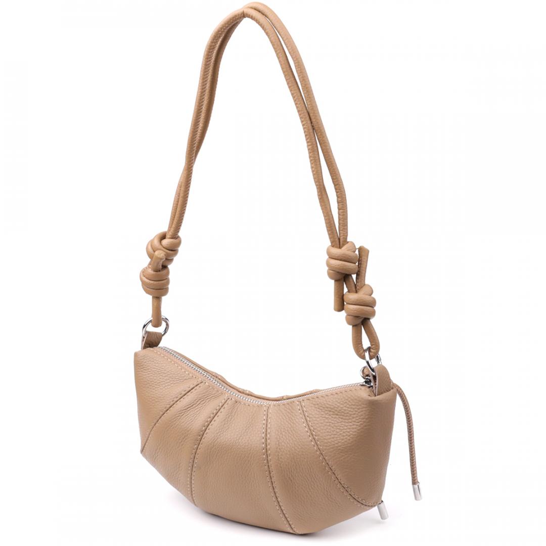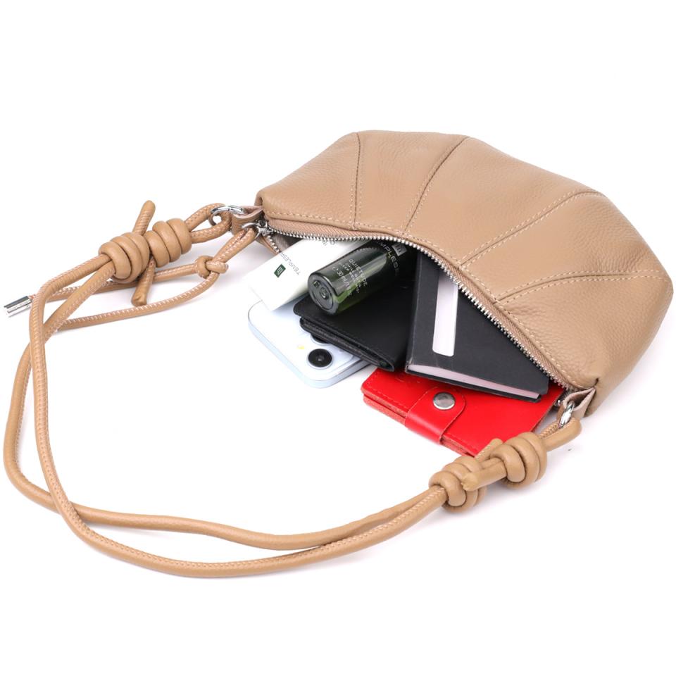 Бежевая кожаная сумка с ремешком-верёвкой — отличный выбор для тех, кто ценит лёгкость, стиль и функциональность в повседневных аксессуарах.