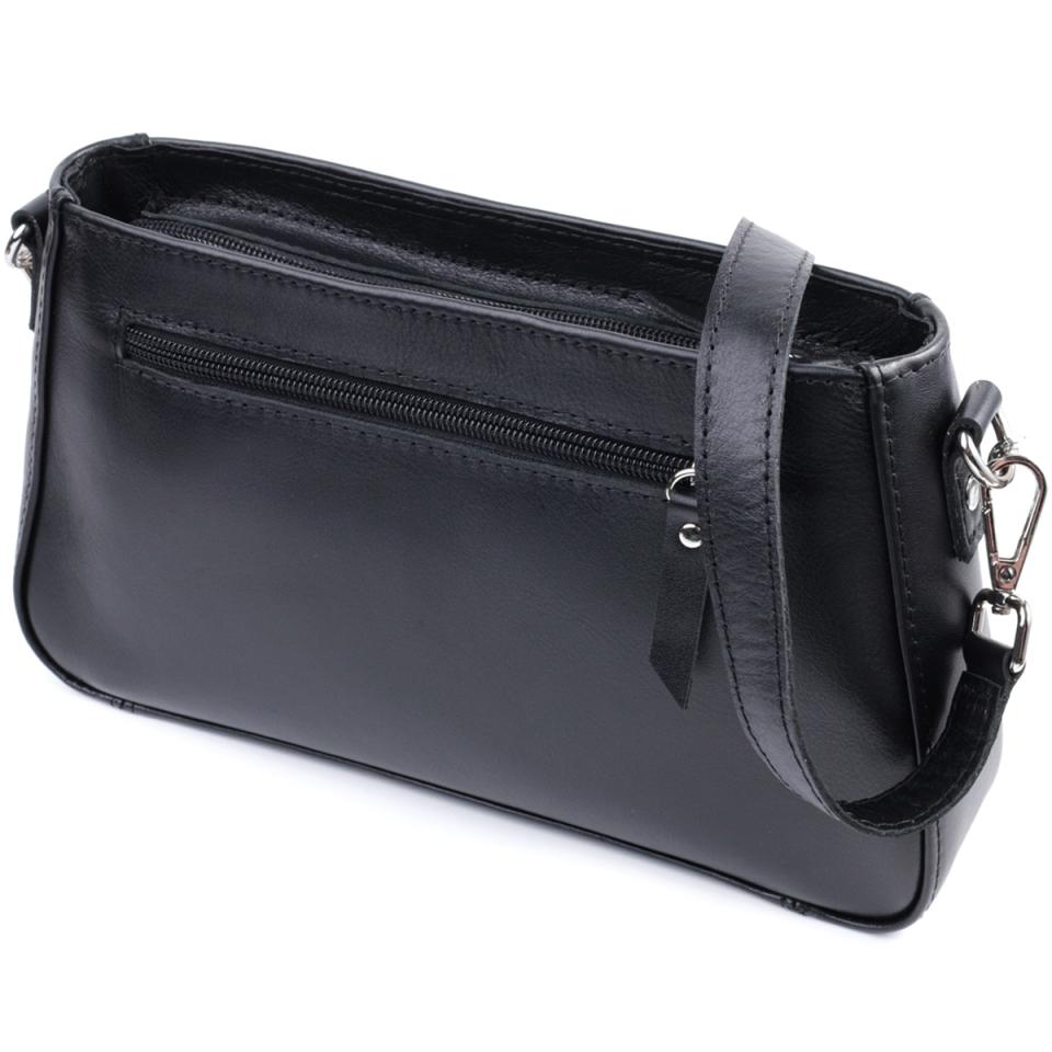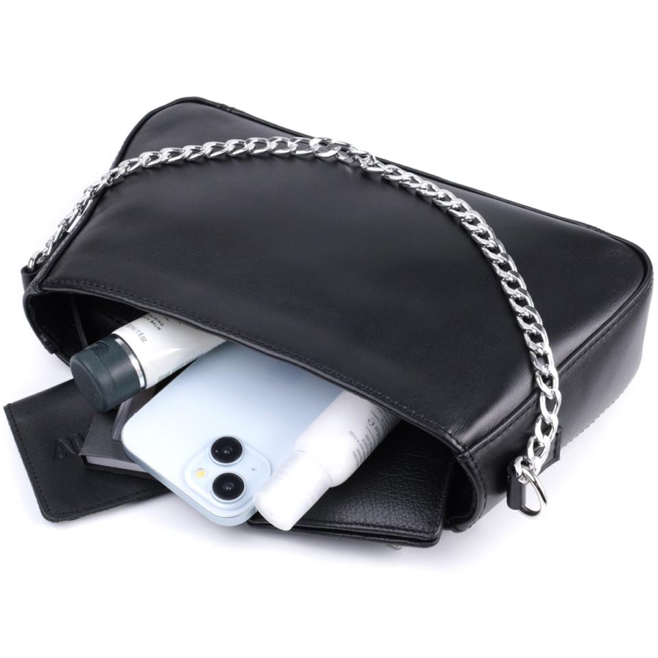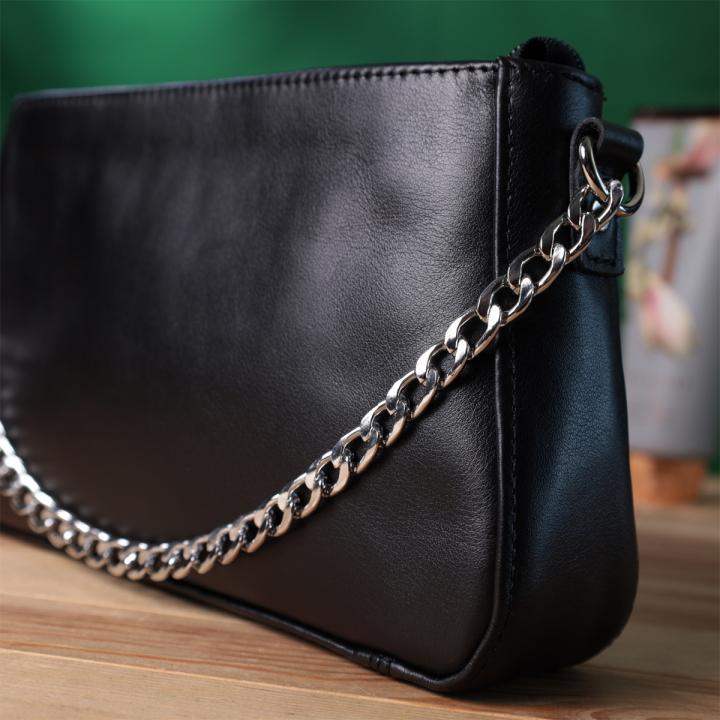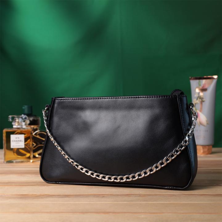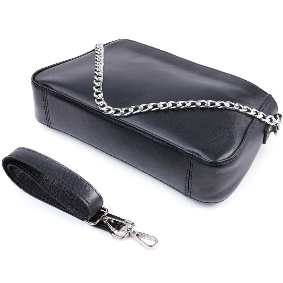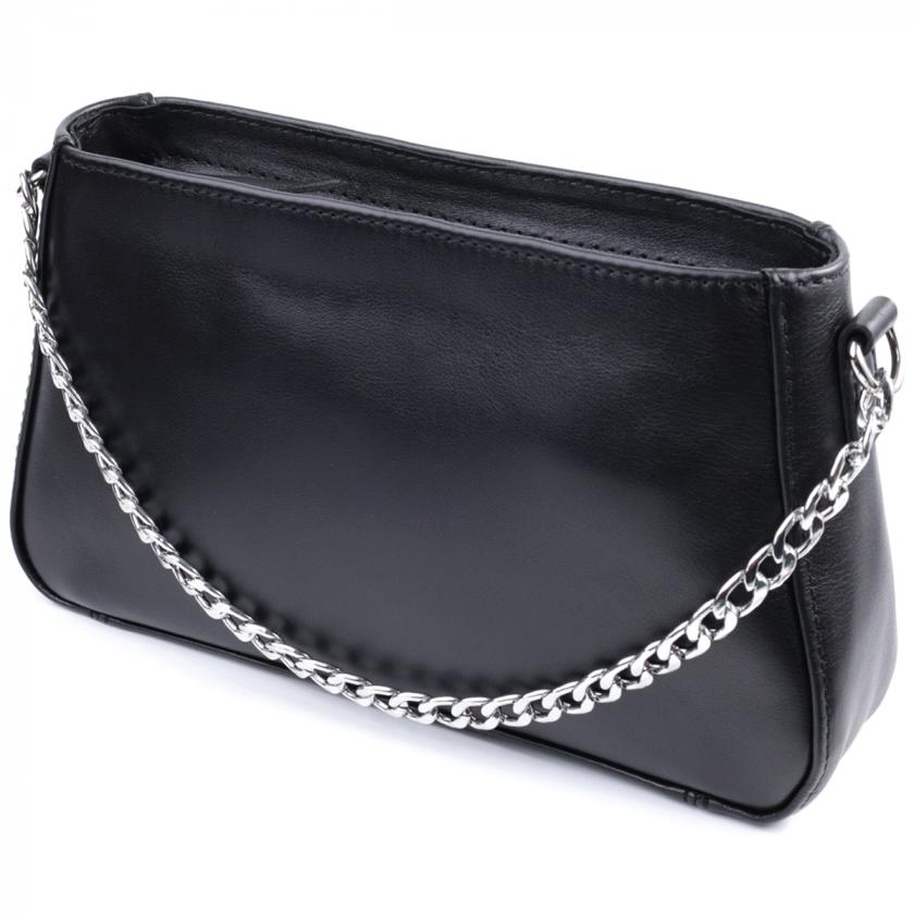 Опис: Женская сумка багет с цепочкой и съемным ремешком из гладкой натуральной кожи Shvigel 22838 Черная