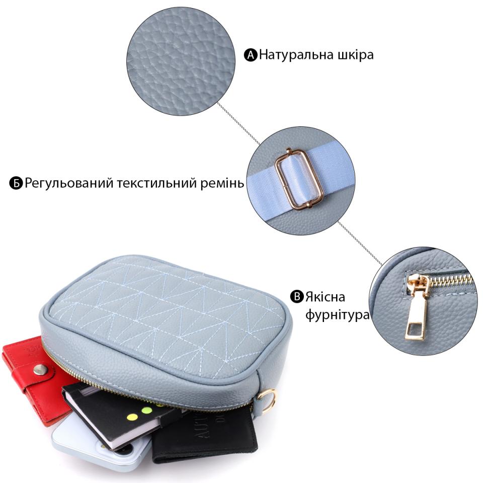 Опис: Женская сумка на каждый день из натуральной кожи Vintage 22902 Серо-голубой