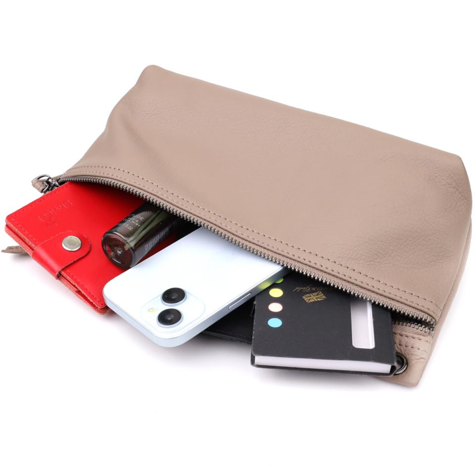 Серый кожаный клатч — это лаконичность, практичность и безупречный вкус в одном аксессуаре.