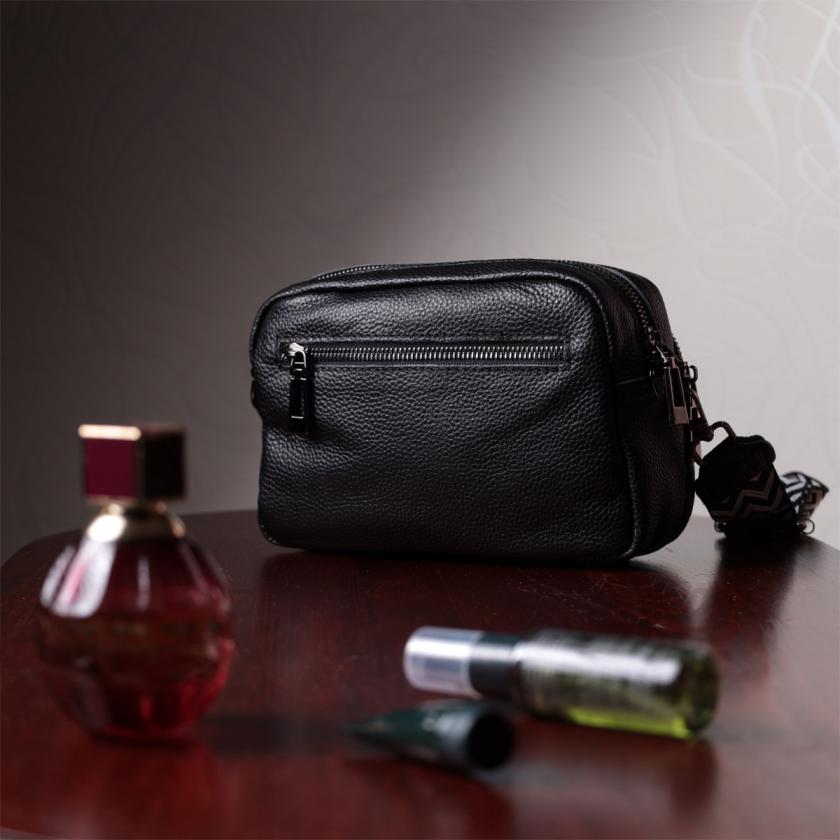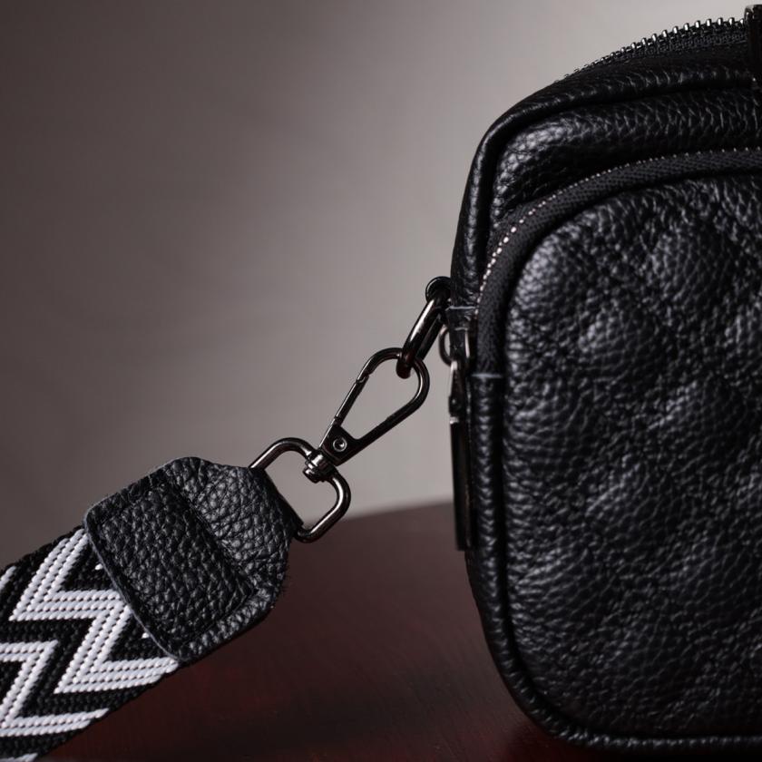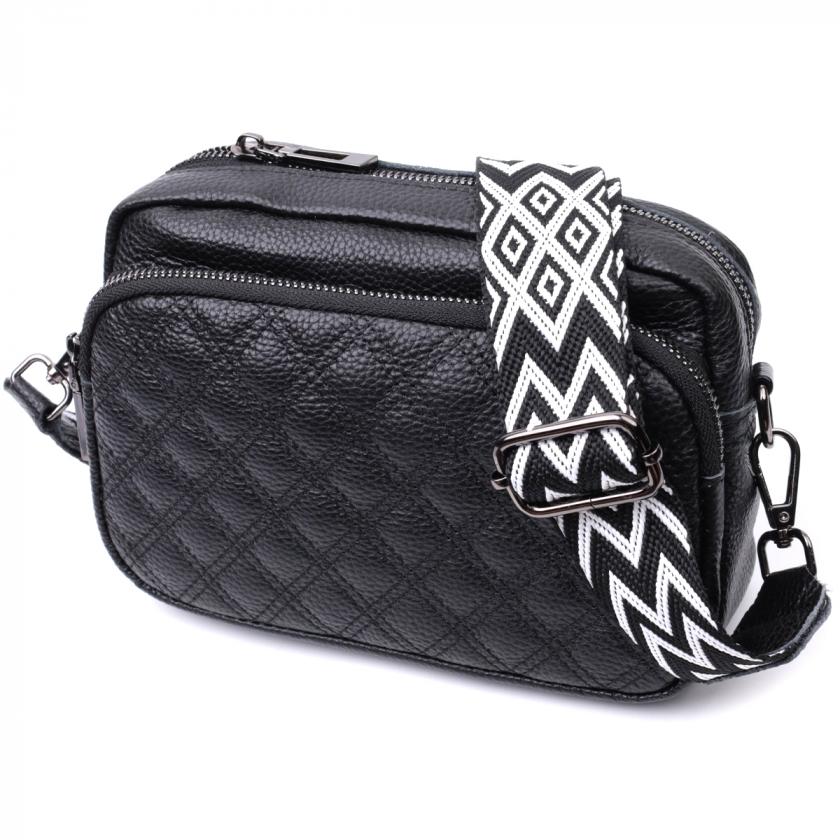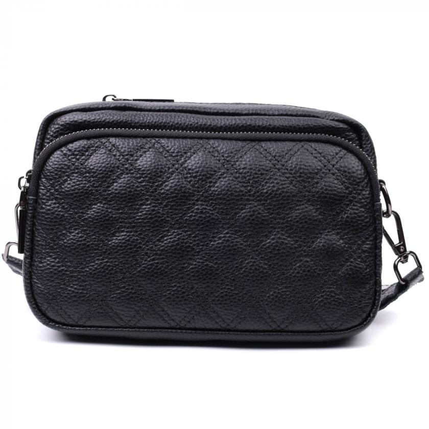 Женская сумка прошитая ромбами на лицевой стороне из натуральной кожи Vintage 22634 Черная