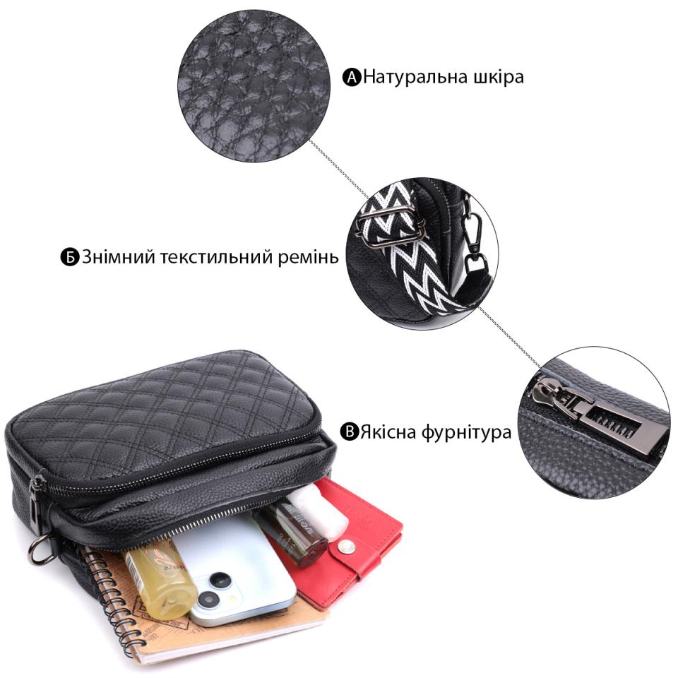 Опис: Женская сумка прошитая ромбами на лицевой стороне из натуральной кожи Vintage 22634 Черная