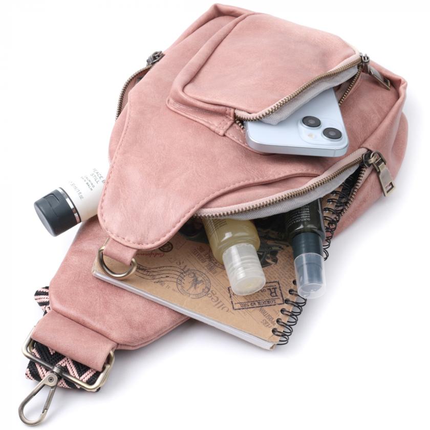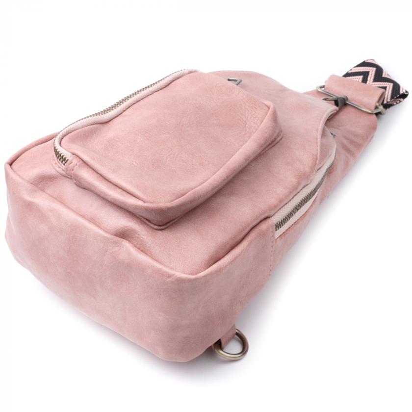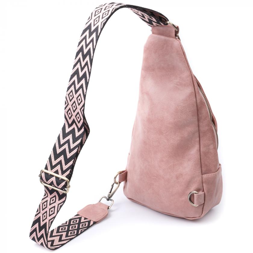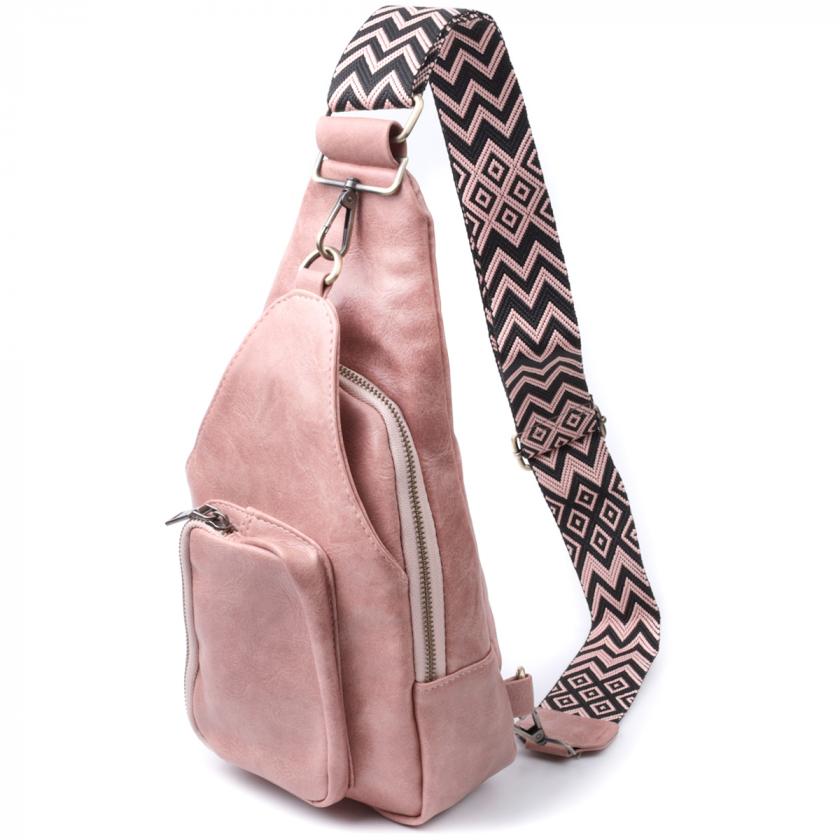 Женская сумка с акцентом на текстильную лямку из гладкой экокожи Vintage 22772 Розовый