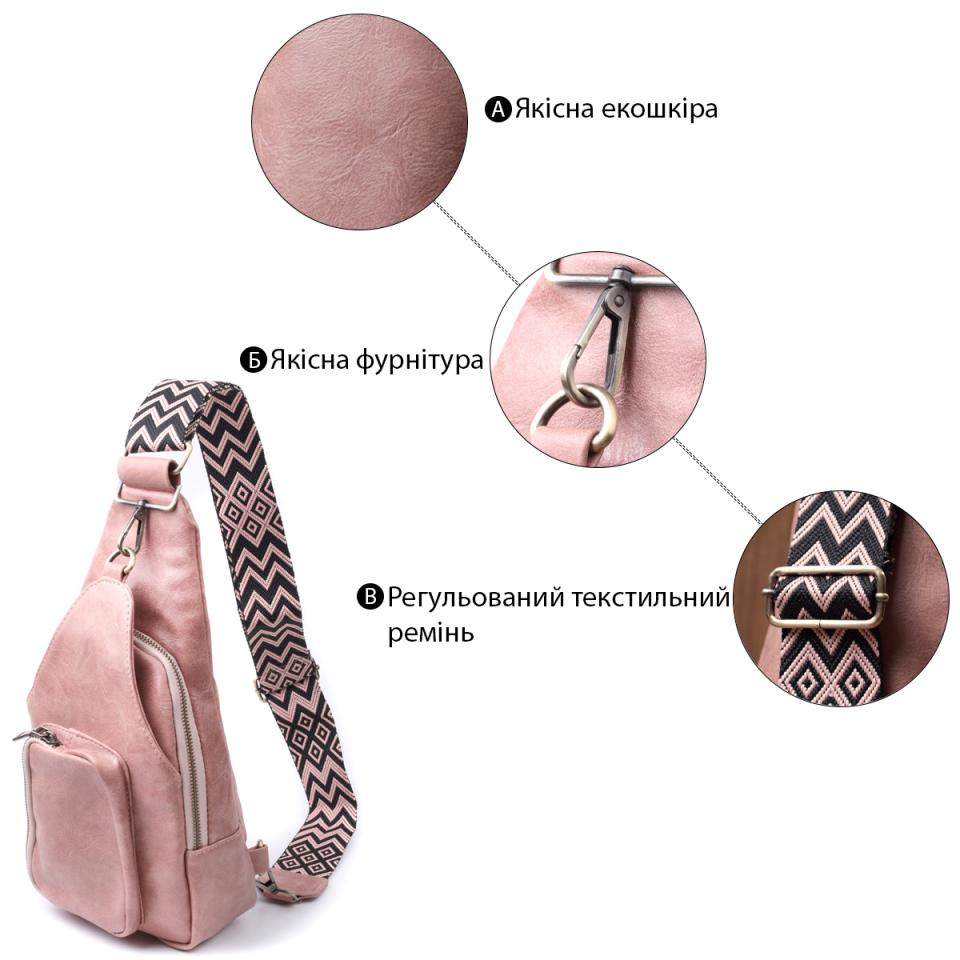 Опис: Женская сумка с акцентом на текстильную лямку из гладкой экокожи Vintage 22772 Розовый