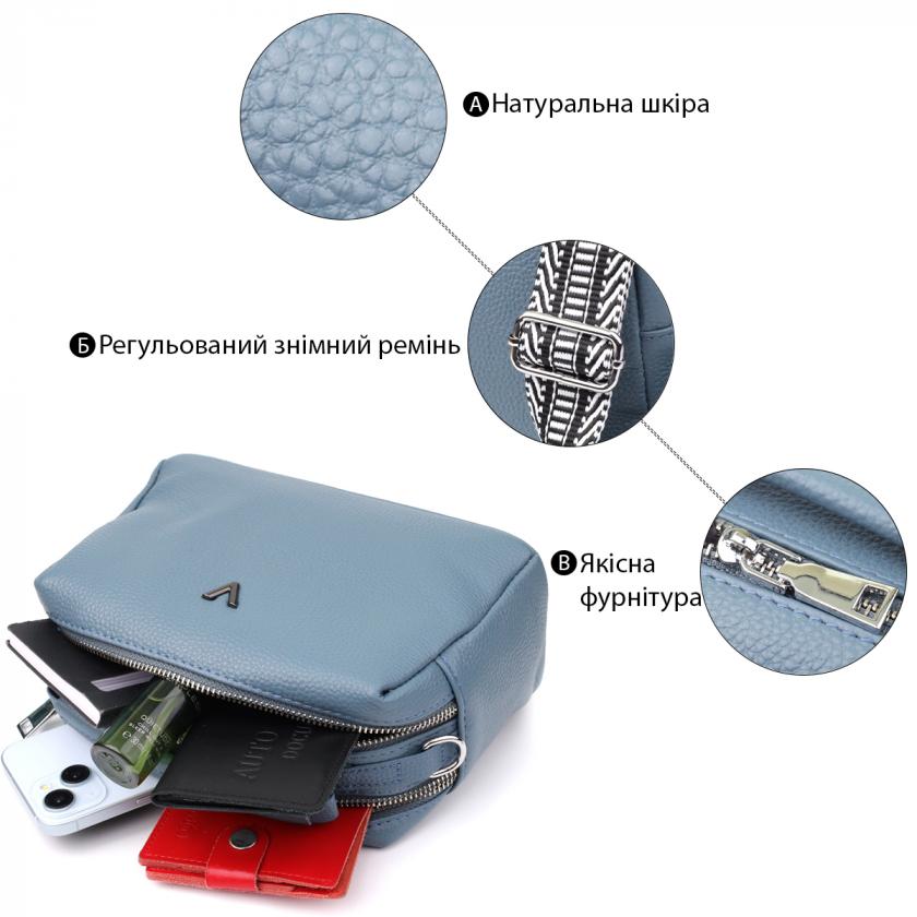 Опис: Женская сумка с двумя секциями из натуральной кожи Vintage 22920 Голубой
