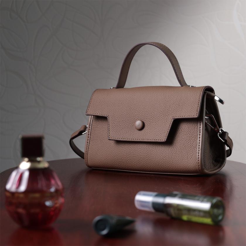Деловая женская сумка с маленькой ручкой для переноски в руках из натуральной качественной кожи. Аксессуар состоит из основного отделения, которое закрывается на молнию и клапан с магнитом, потайного кармана на молнии и кармана открытого типа внутри. Носить сумку можно в руке, на плече и через плечо для этого имеется съемный кожаный ремень и маленькая кожаная ручка. В аксессуаре использована качественная фурнитура цвета серебра.
