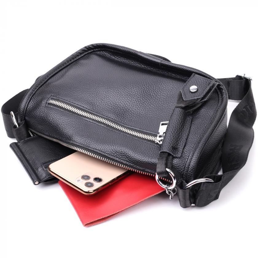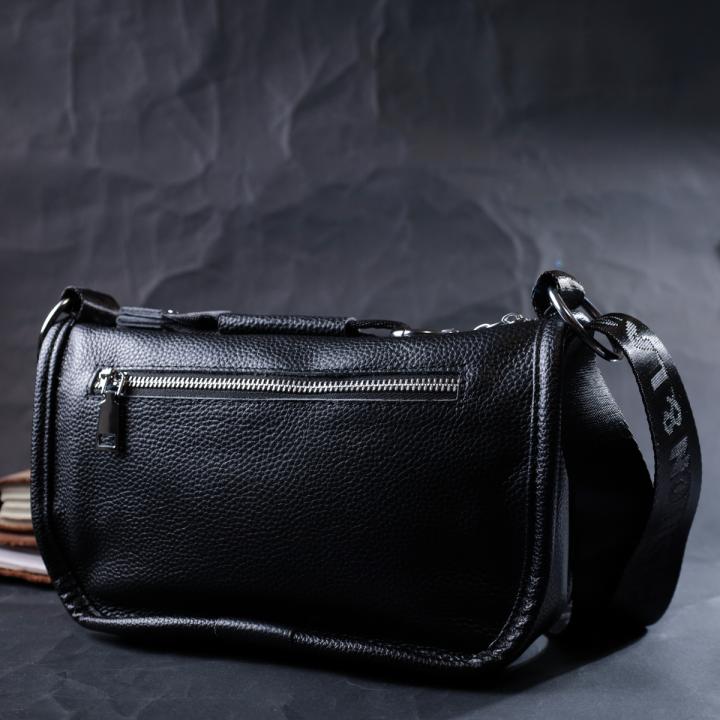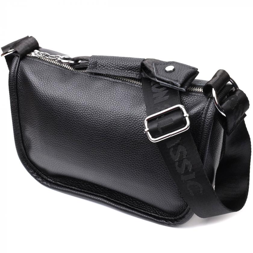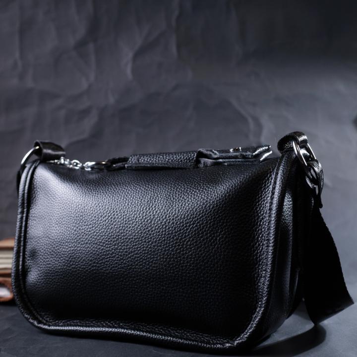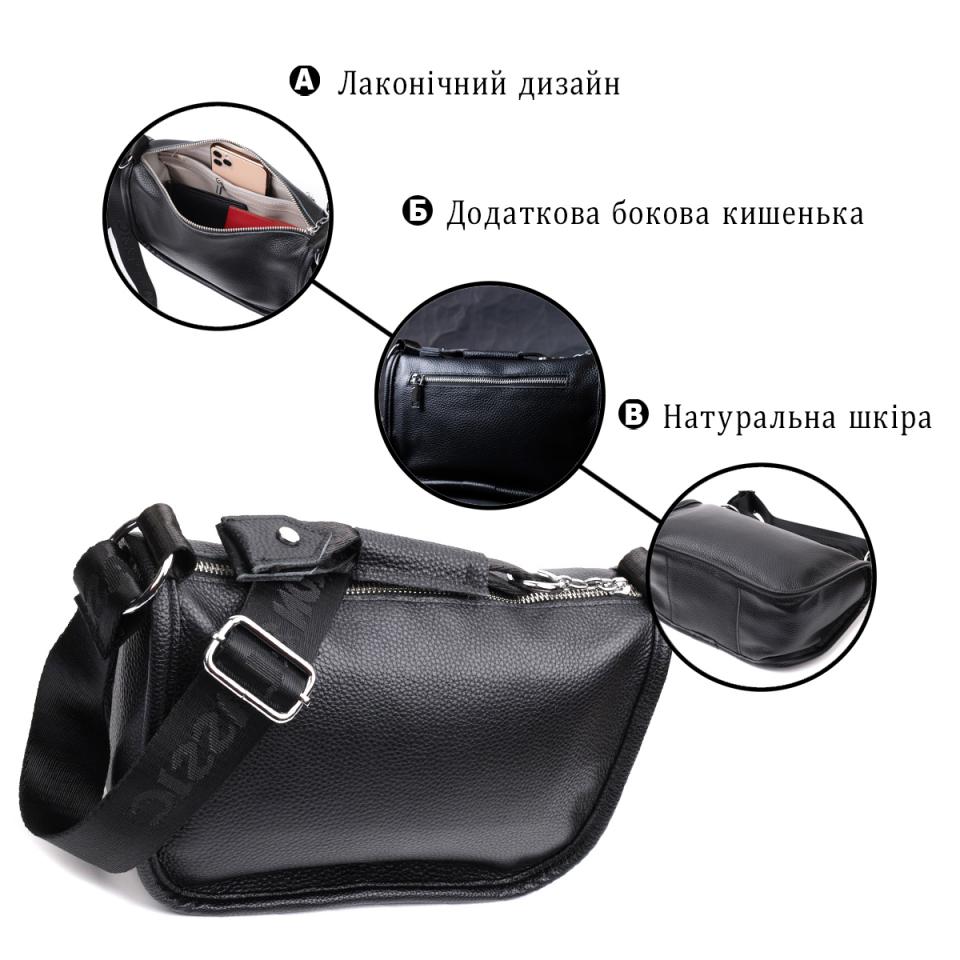 Опис: Женская сумка с округленными краями из натуральной кожи Vintage 22253 Черная
