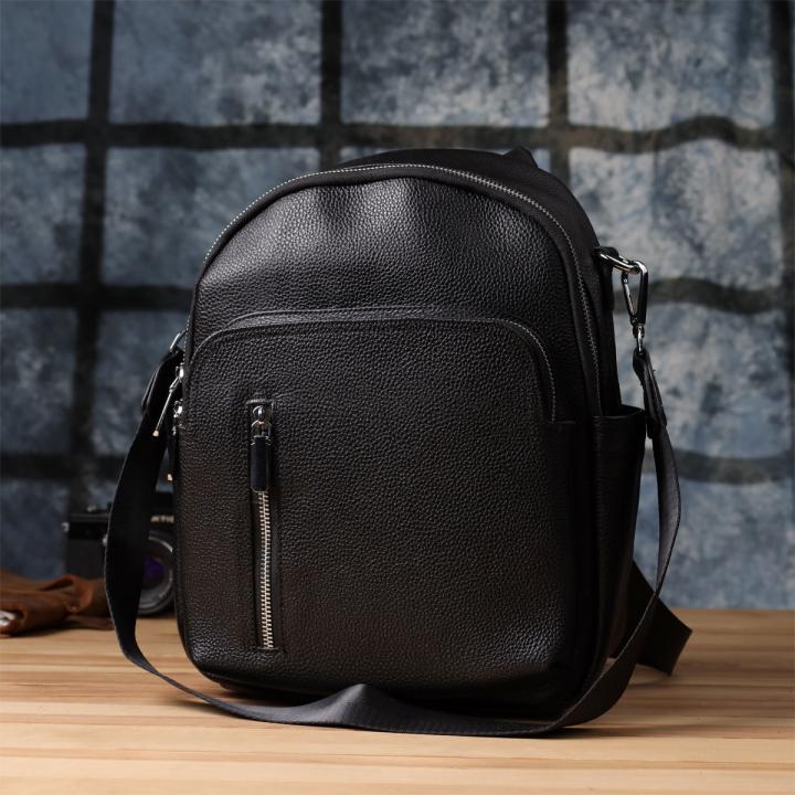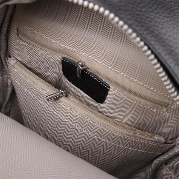 Женский кожаный рюкзак выполнен в функциональном и современном дизайне, идеально подходящем для повседневного использования. Он оснащён одним основным отделением на молнии, внутри которого предусмотрены два кармана на молниях и один открытого типа для удобного хранения необходимых вещей.