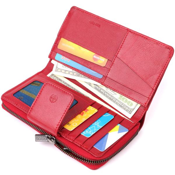 Яркое портмоне Tony Perotti красного цвета выполнено из натуральной телячьей кожи и отличается продуманной организацией внутреннего пространства. Модель рассчитана на хранение купюр в разложенном виде, что обеспечивает дополнительный комфорт в использовании. Качественная брендированная фурнитура подчёркивает премиальный уровень изделия, а классический дизайн делает портмоне универсальным аксессуаром и отличным подарком для женщины.
