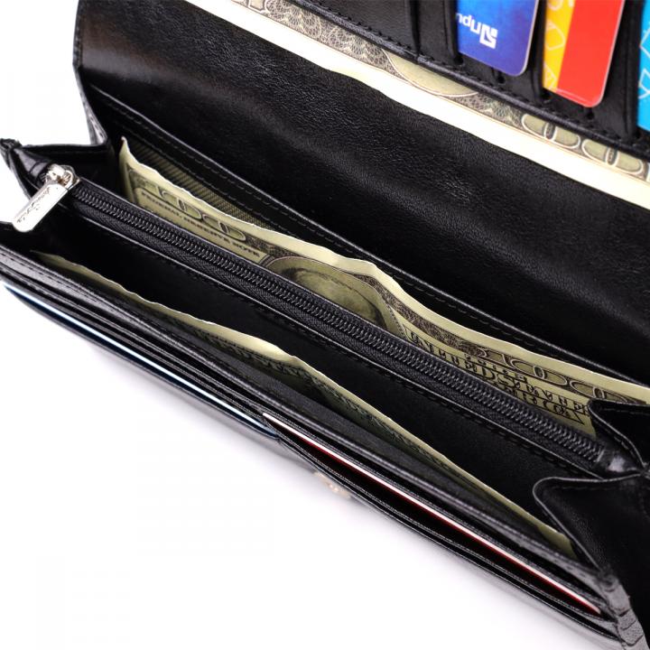 – 3 плоских кармана на всю длину портмоне;