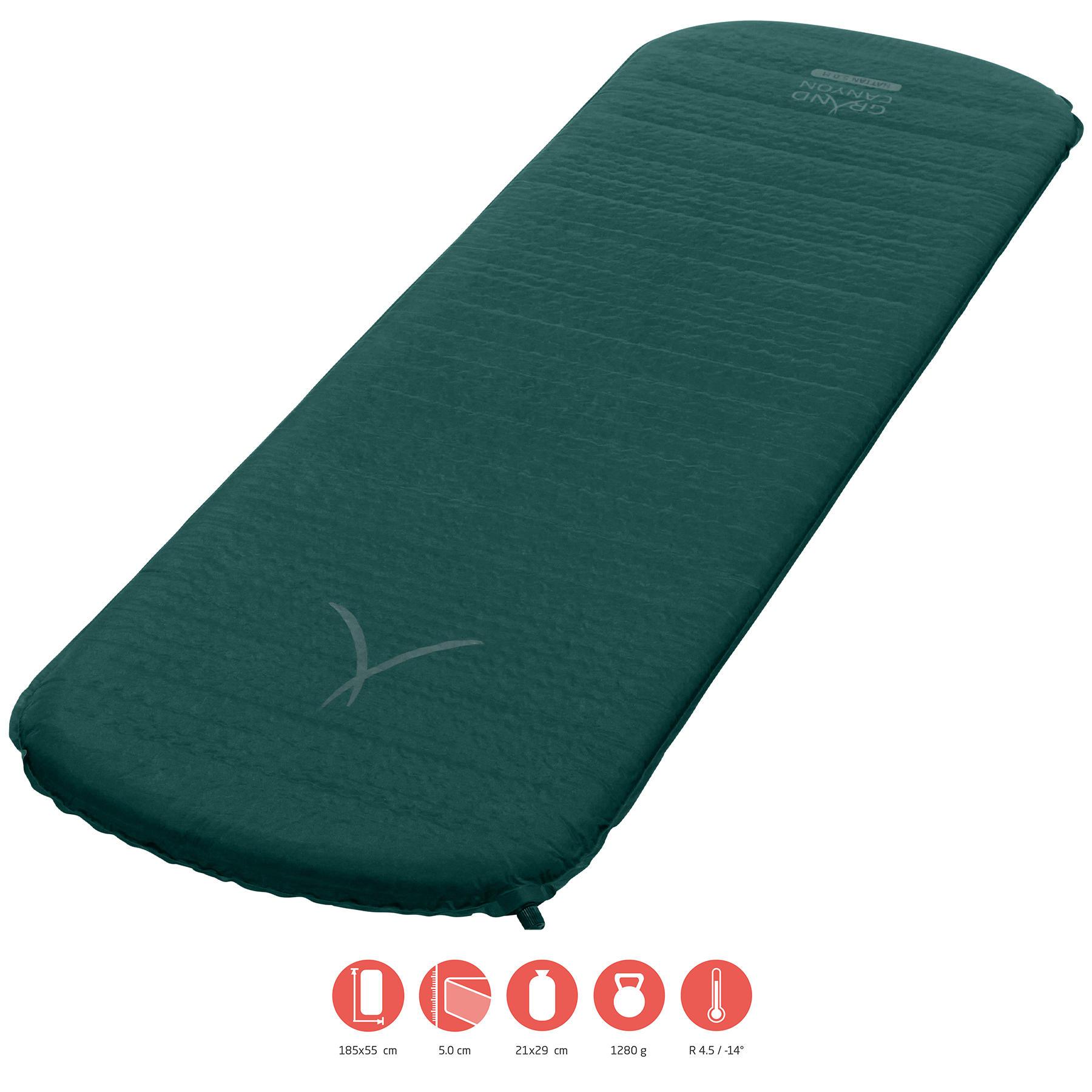 Самонадувний килимок Grand Canyon Hattan 5.0 M - це полегшена версія, що дозволяє комфортно розмістить користувачам із зростом до 1.85 метра, та забезпечує належні термоізоляційні властивості при температурі до -14°С. При цьому модель звісно що є досить компактною та легкою, як для самонадувного килимка. Верхня оболонка Hattan 5.0 M має м’яку на дотик текстильну поверхню, нижня сторона мінімізує ковзання на гладкій підлозі намету. Простий у використанні гвинтовий клапан забезпечує швидке самонадування та дає можливість подальшого надування та швидкого здування після використання.