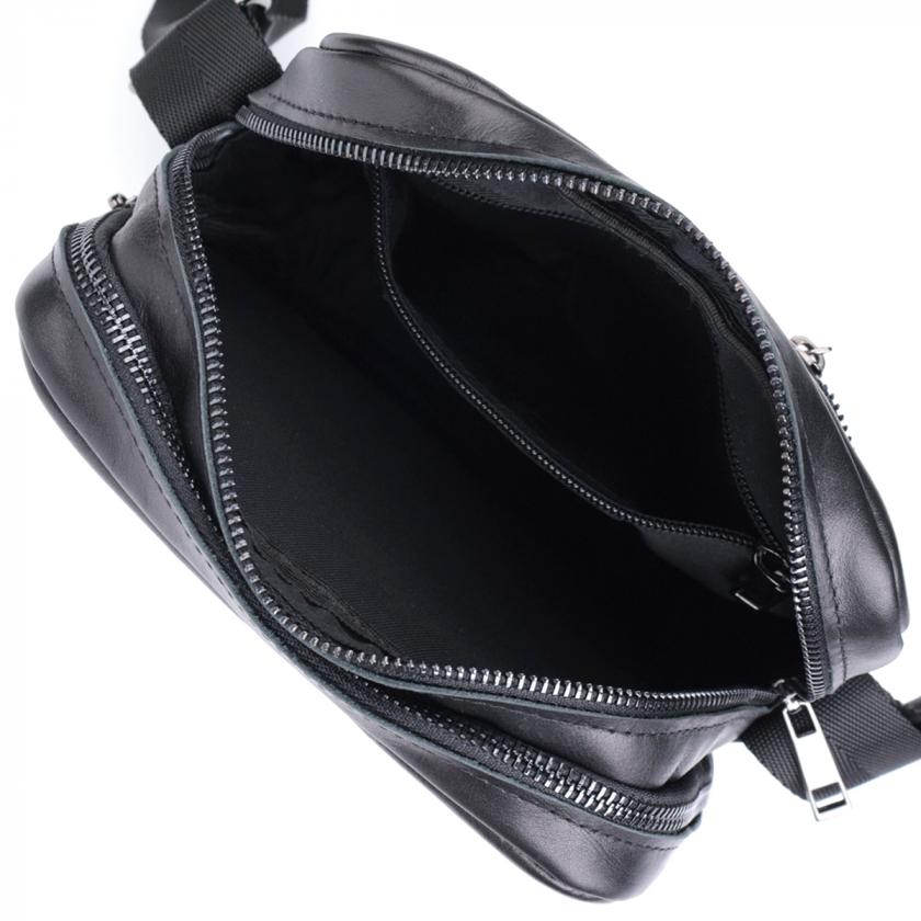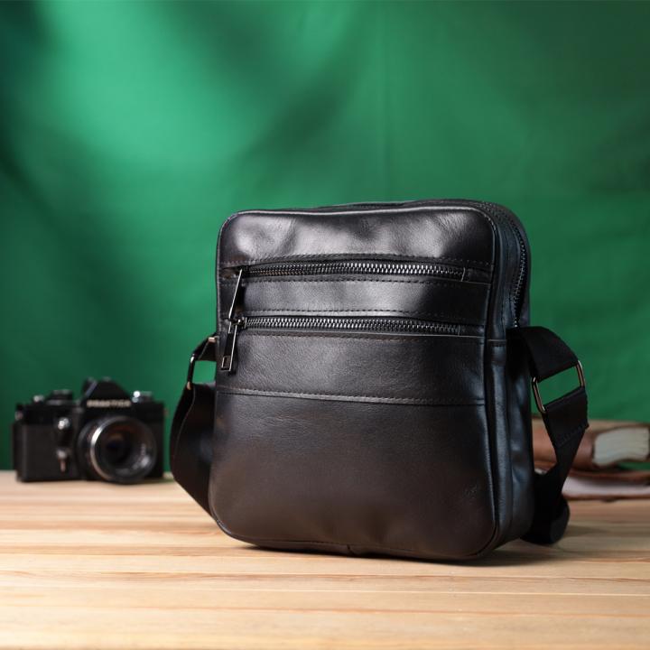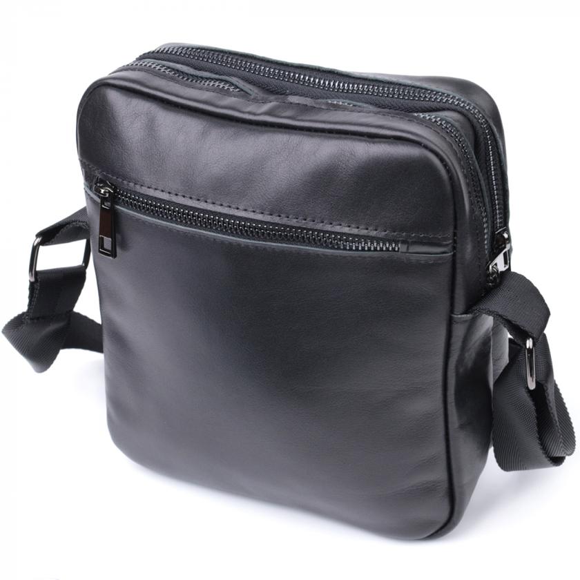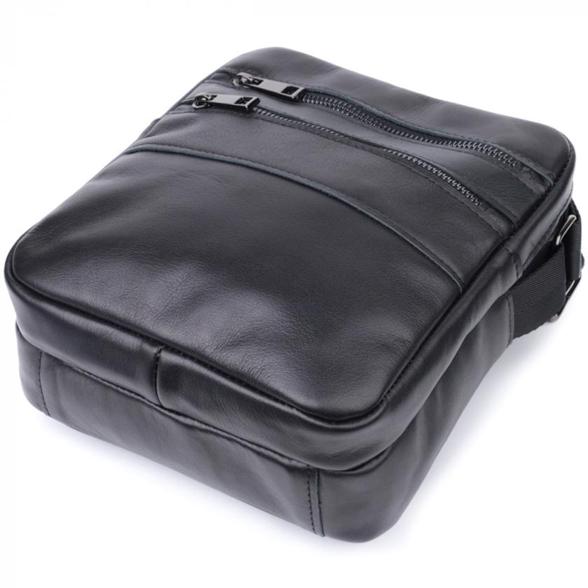 Классическая мужская сумка мессенджер из глянцевой натуральной кожи Shvigel 22846 Черная