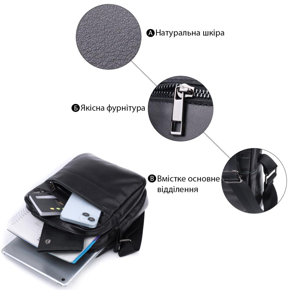 Опис: Классическая мужская сумка мессенджер из глянцевой натуральной кожи Shvigel 22846 Черная
