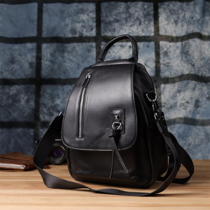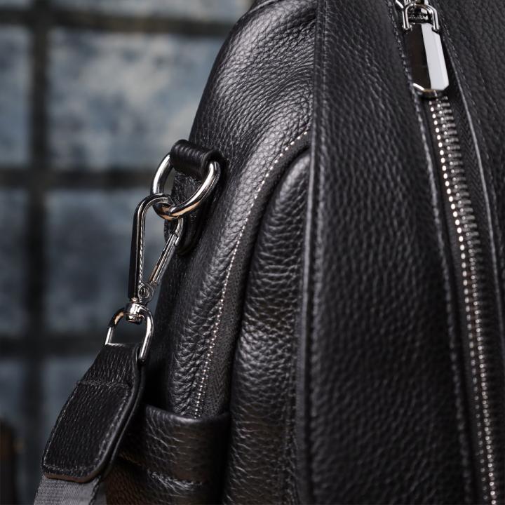 Женский кожаный рюкзак сочетает в себе универсальность, комфорт и продуманную организацию. Он оснащён одним основным отделением на молнии, внутри которого расположены два кармана на молниях и один открытого типа — всё необходимое под рукой и в порядке.