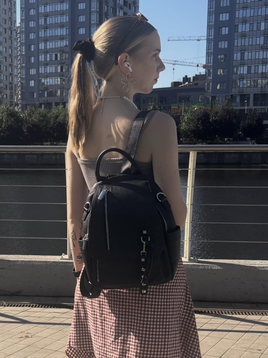 Для комфортной носки модель оснащена кожаной ручкой для переноски, кожано-текстильными регулируемыми лямками и съёмным текстильным ремешком, позволяющим носить рюкзак как сумку. Эта модель подойдёт для города, прогулок и ежедневных дел, объединяя стиль и практичность.