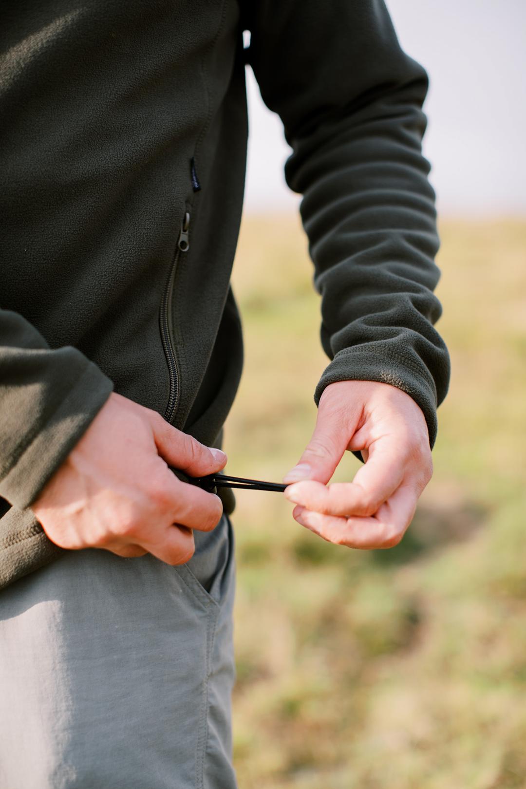 Низ кофты имеет регулировку, позволяющую легко подогнать ширину под себя, защищая от ветра и сохраняя тепло.