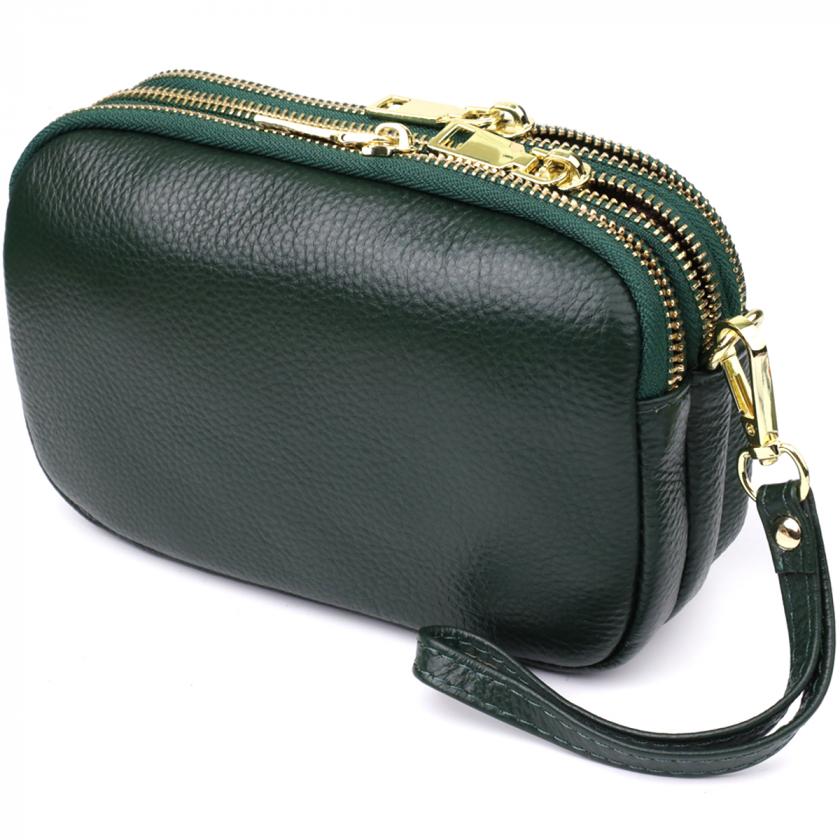 Опис: Кожаная сумка на три отделения для женщин Vintage 22893 Зеленый