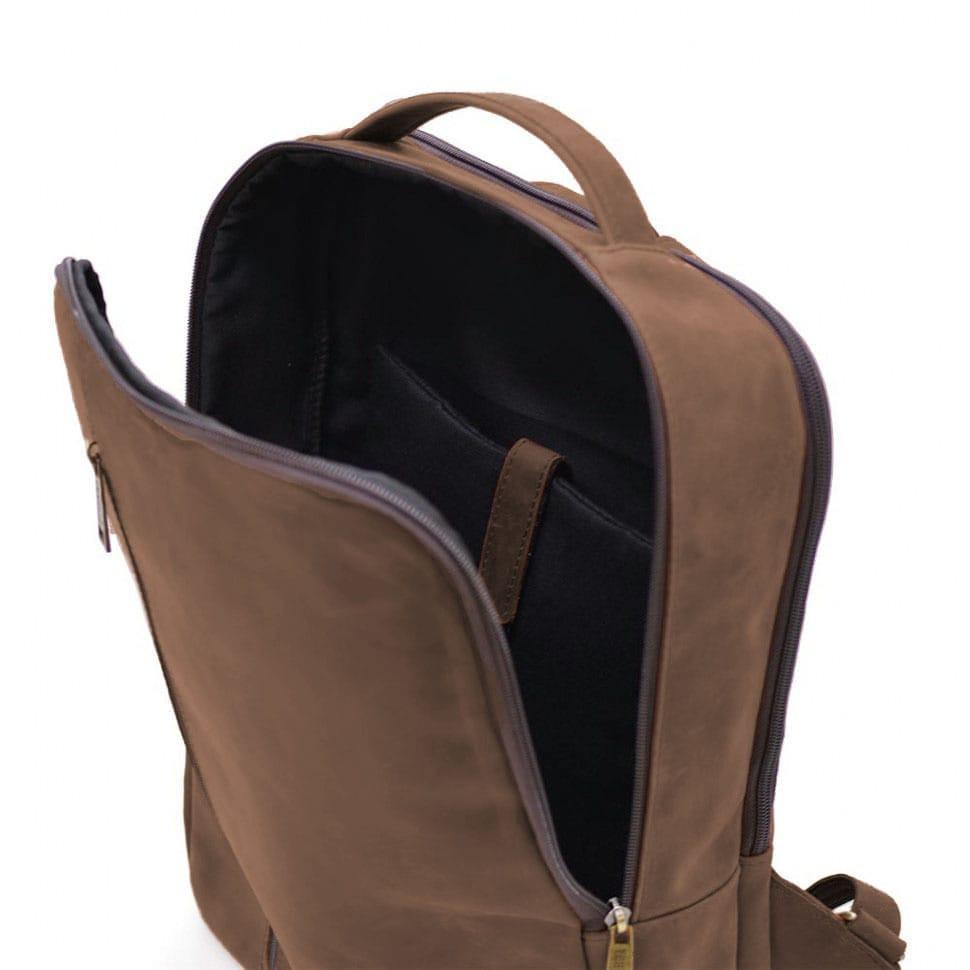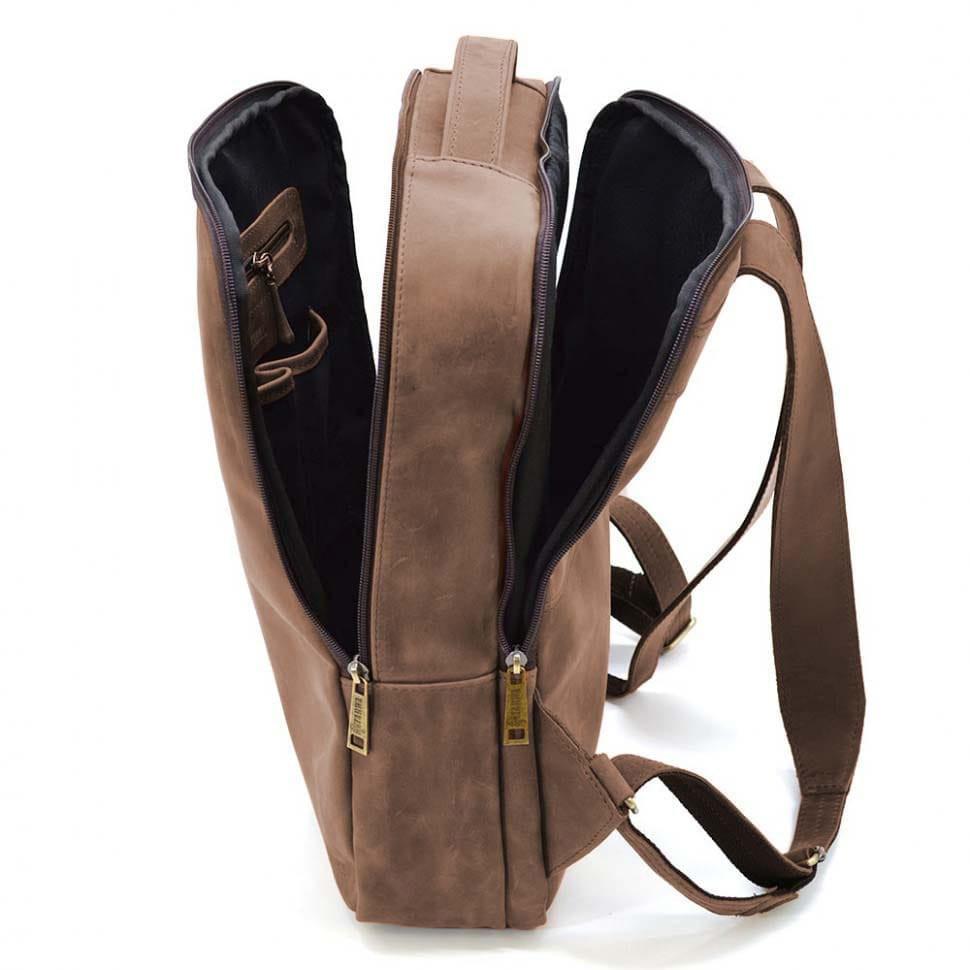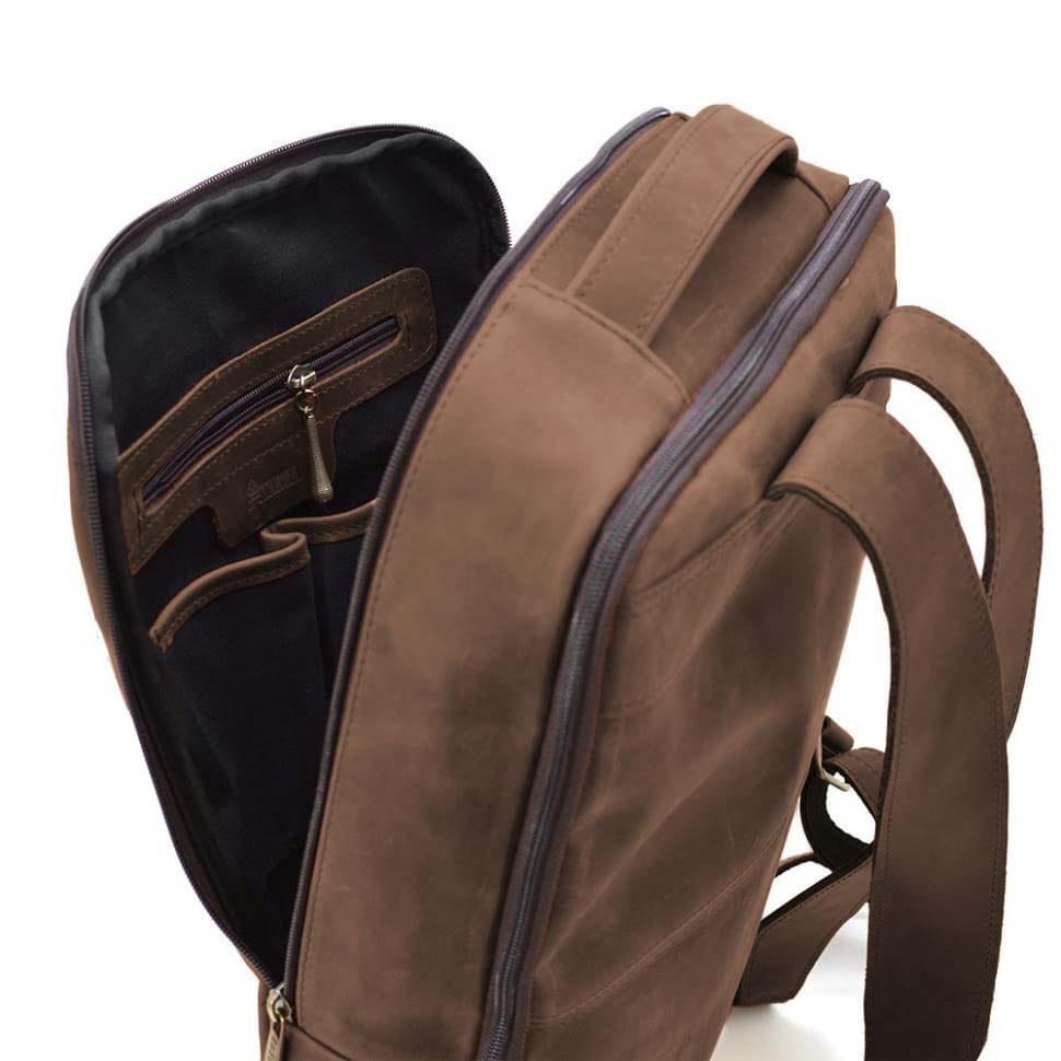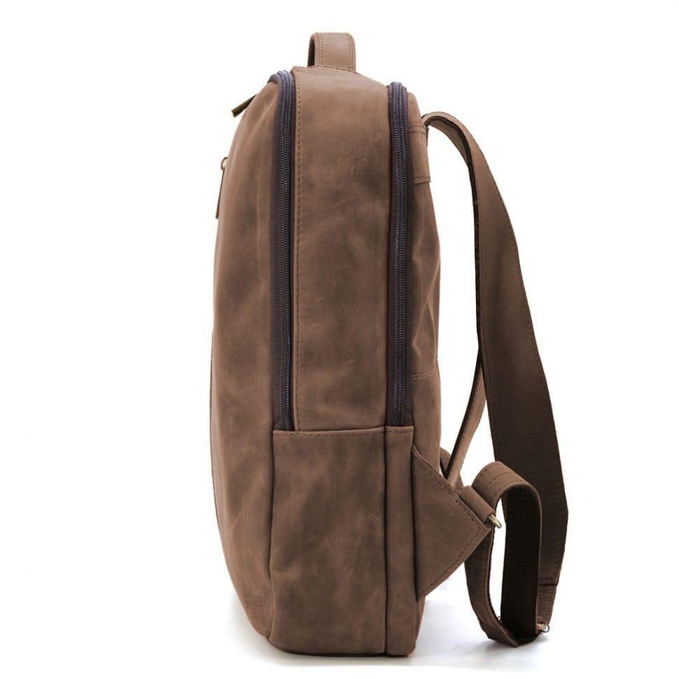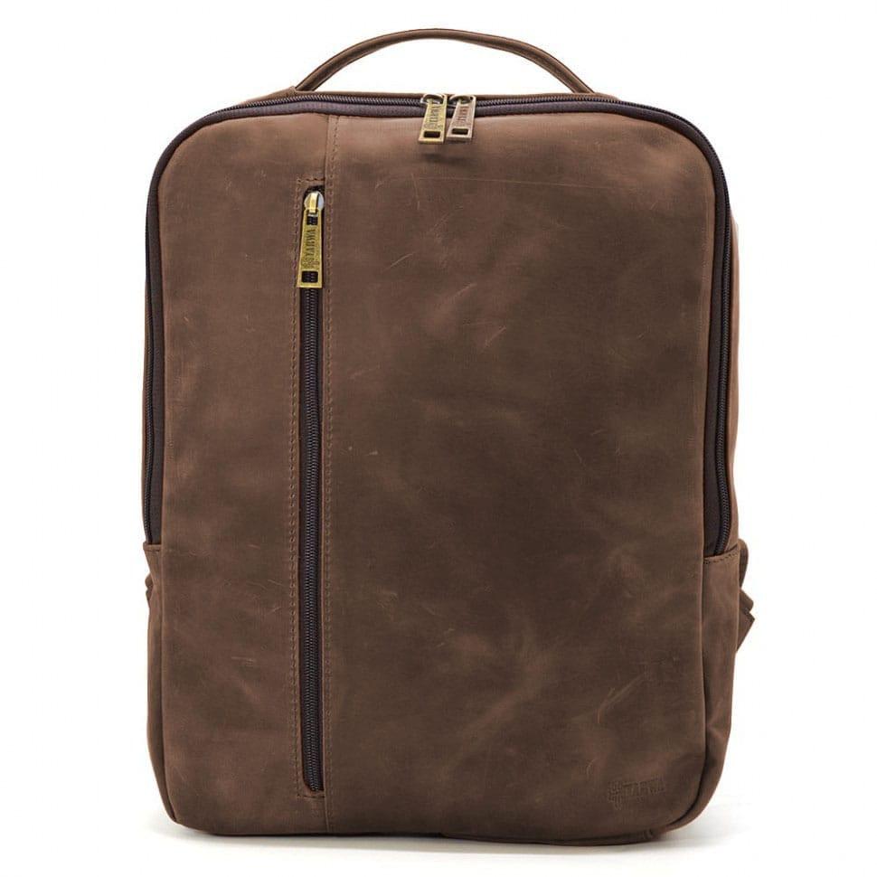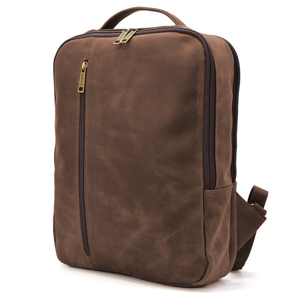Кожаный мужской рюкзак коричневый TARWA RC-7287-3md Crazy Horse- вместительный мужской рюкзак с карманом для ноутбука либо габаритного планшета внутри, имеющий простую и удобную структуру.