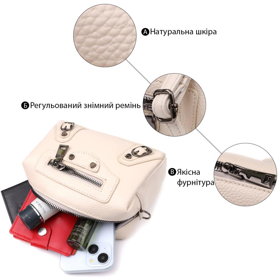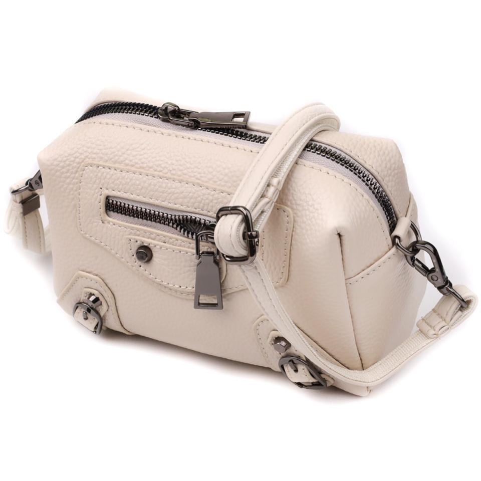 Опис: Компактная женская сумка с трендовым декором из натуральной кожи Vintage 22923 Белый
